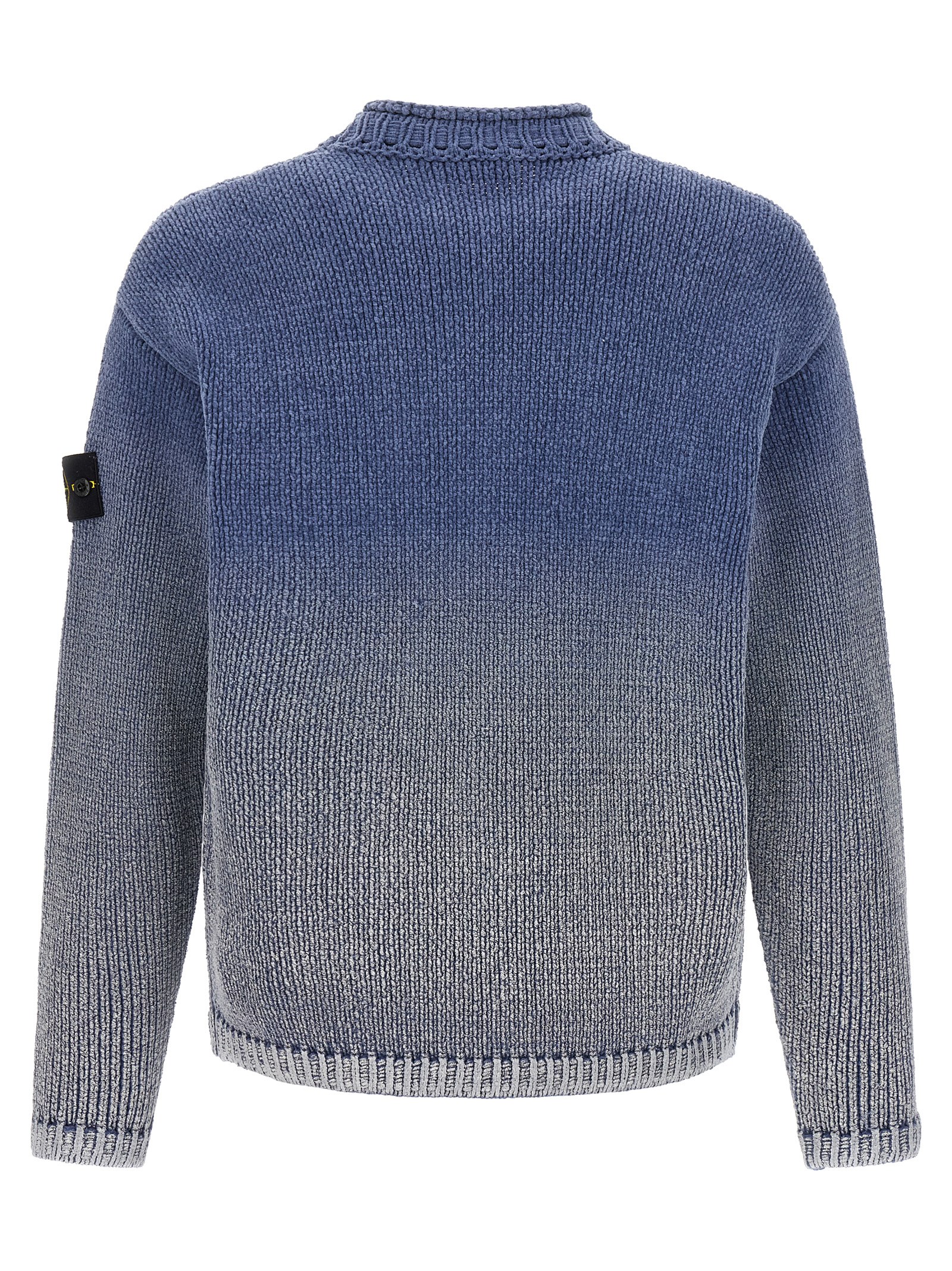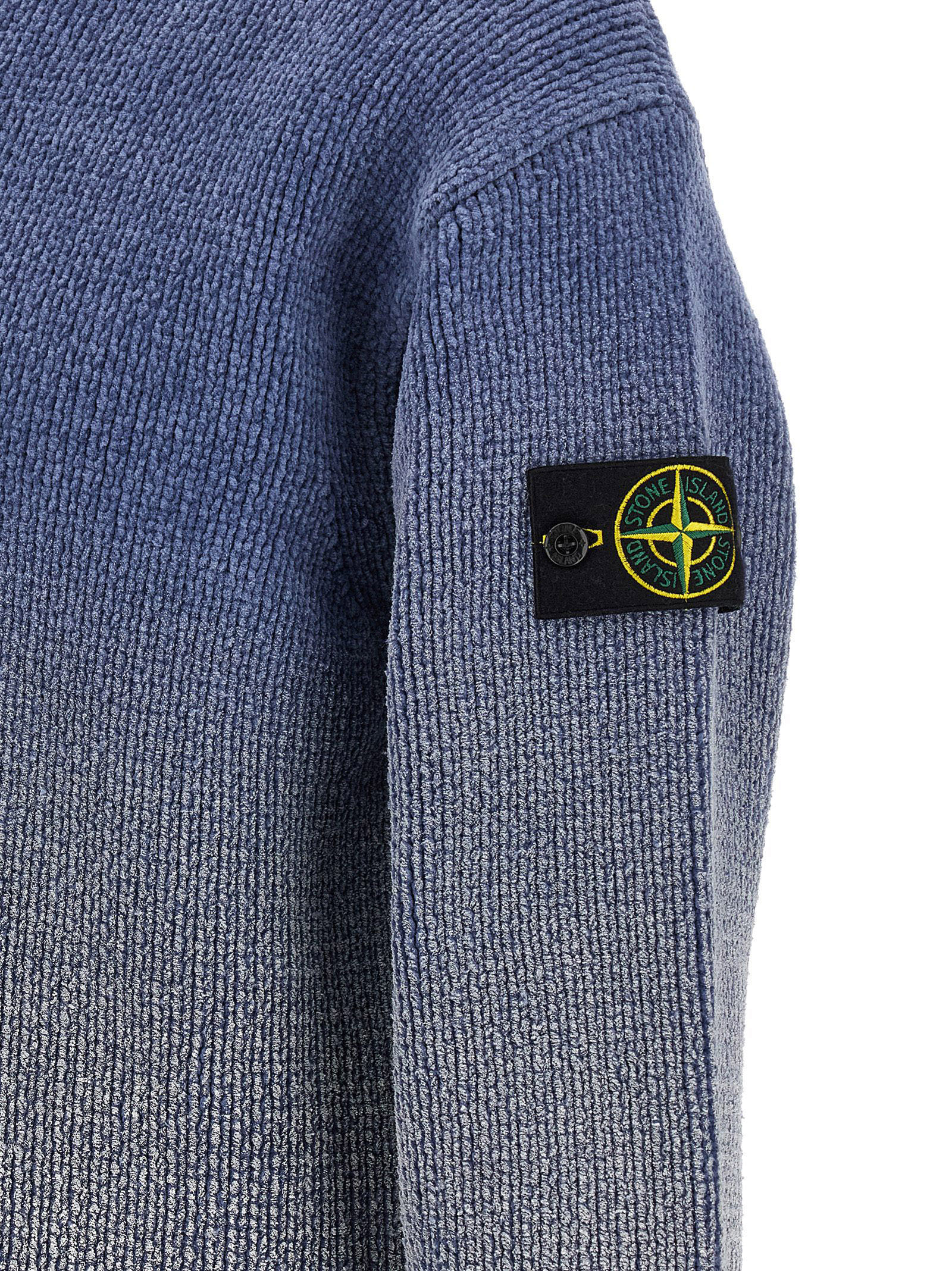 Свитер '5100003' из хлопковой синели с градиентным эффектом, тонкой вязки 3-го уровня, круглым вырезом, длинными рукавами с манжетами и аппликацией в виде логотипа.