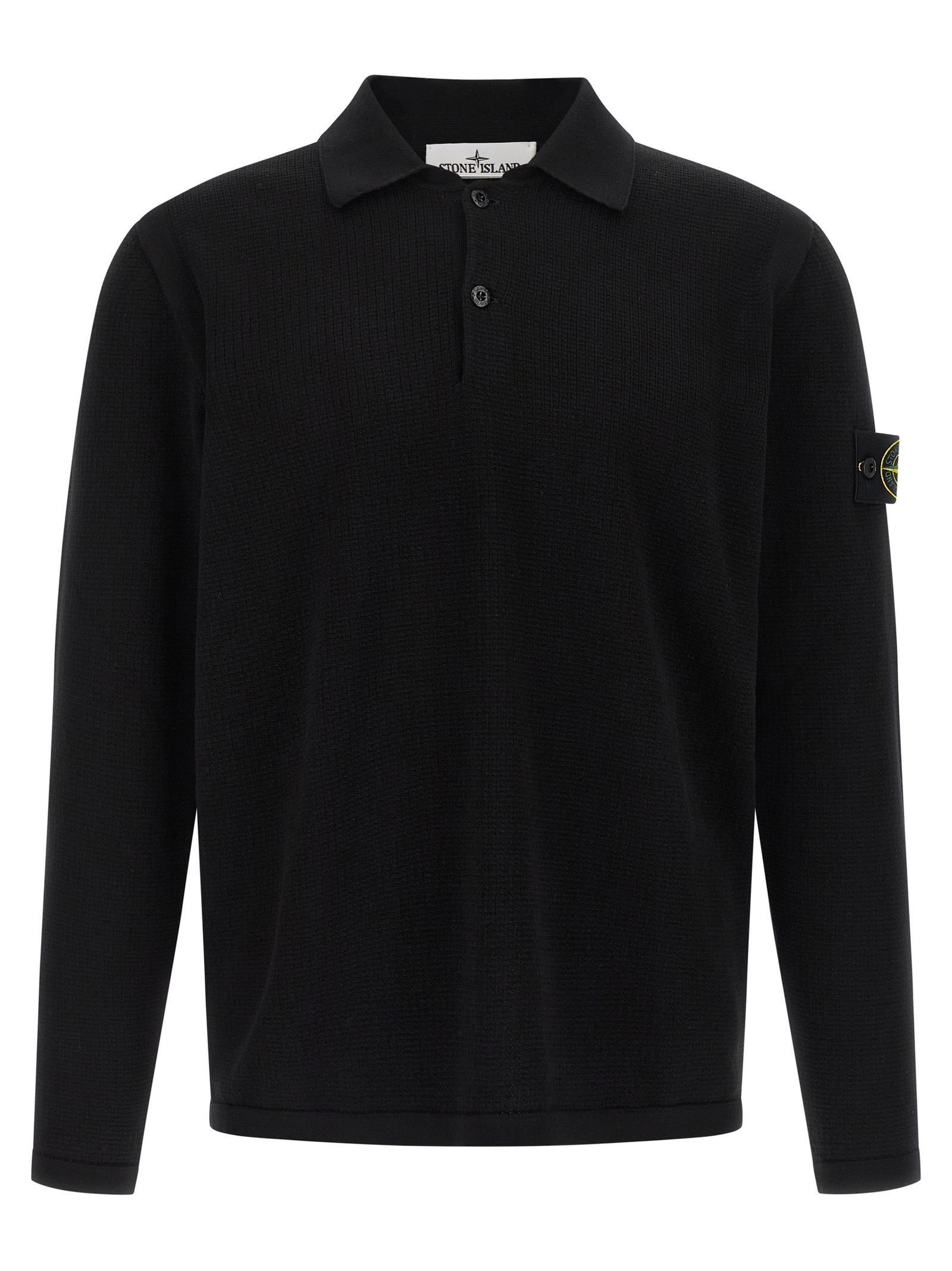 '5100024' micro fineness 14 stitch cotton polo shirt, long sleeves, collar and buttons, long sleeves with cuffs and logo badge appliqué, side slits. SUSTAINABLE: This product is made of organic cotton.