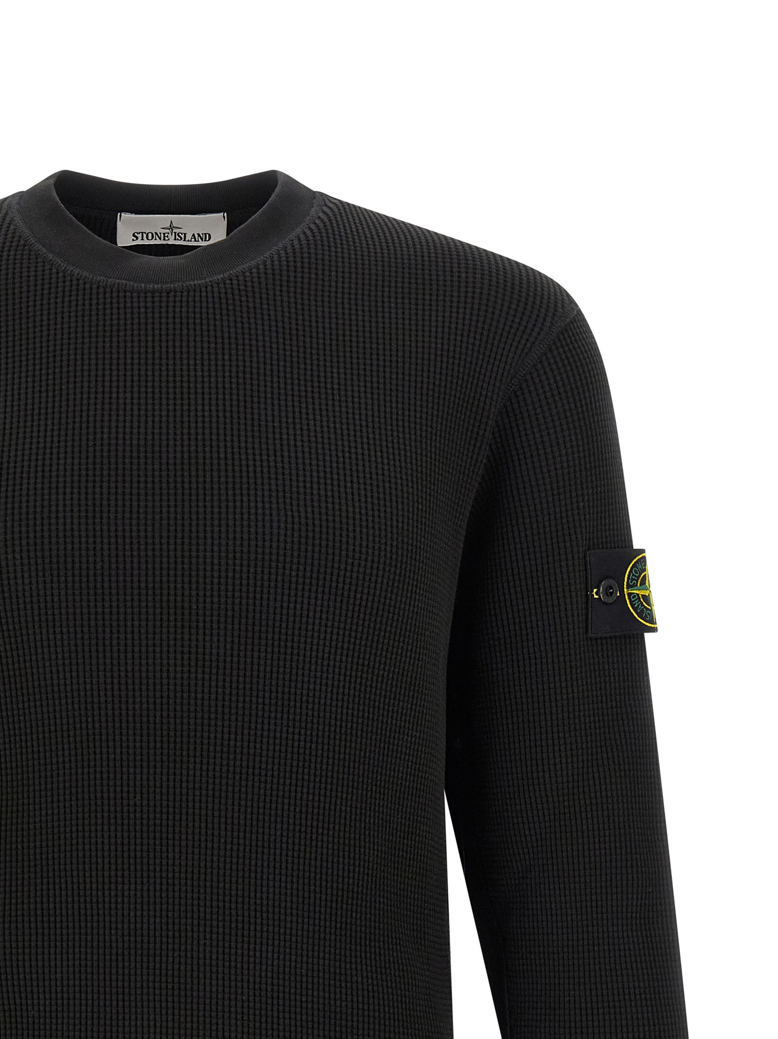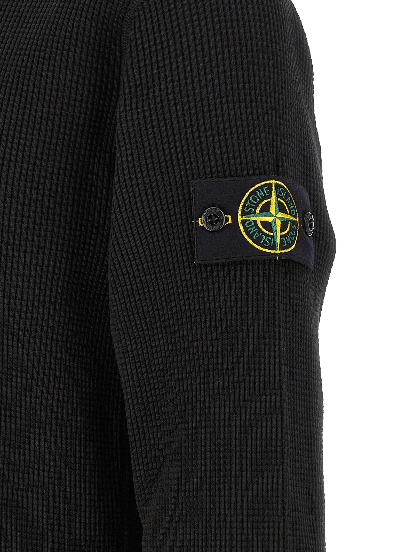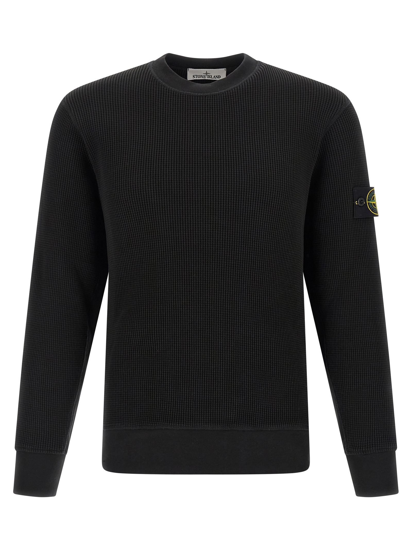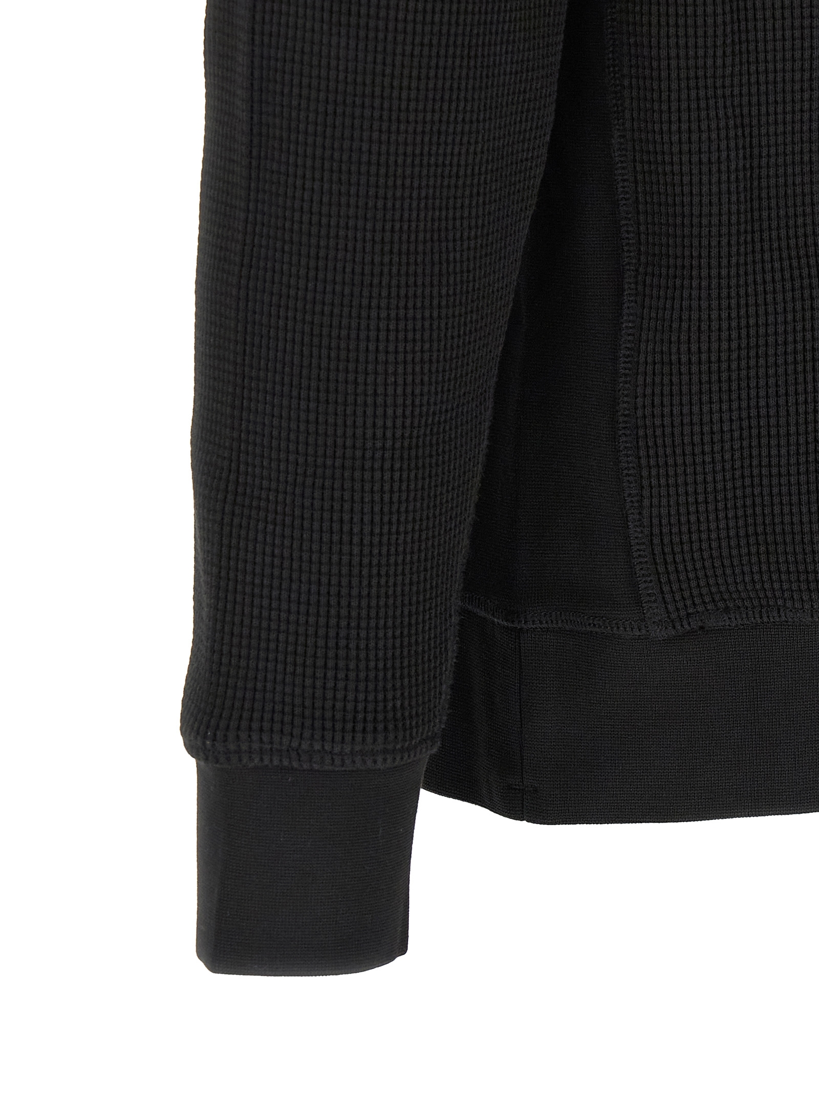 6100056' heavy honeycomb cotton fleece sweatshirt with ribbed cotton side insert, overlock stitching, crew neck, long cuffed sleeves, logo badge appliqué, and headband on the hem. SUSTAINABLE: This product is made of organic cotton.