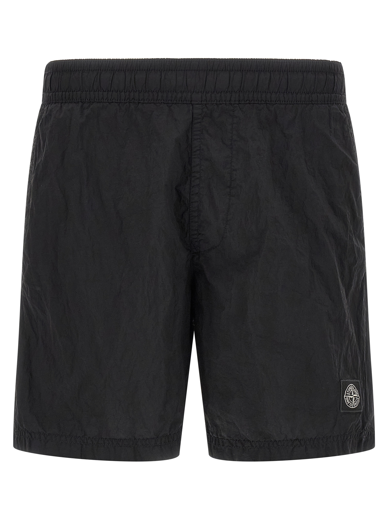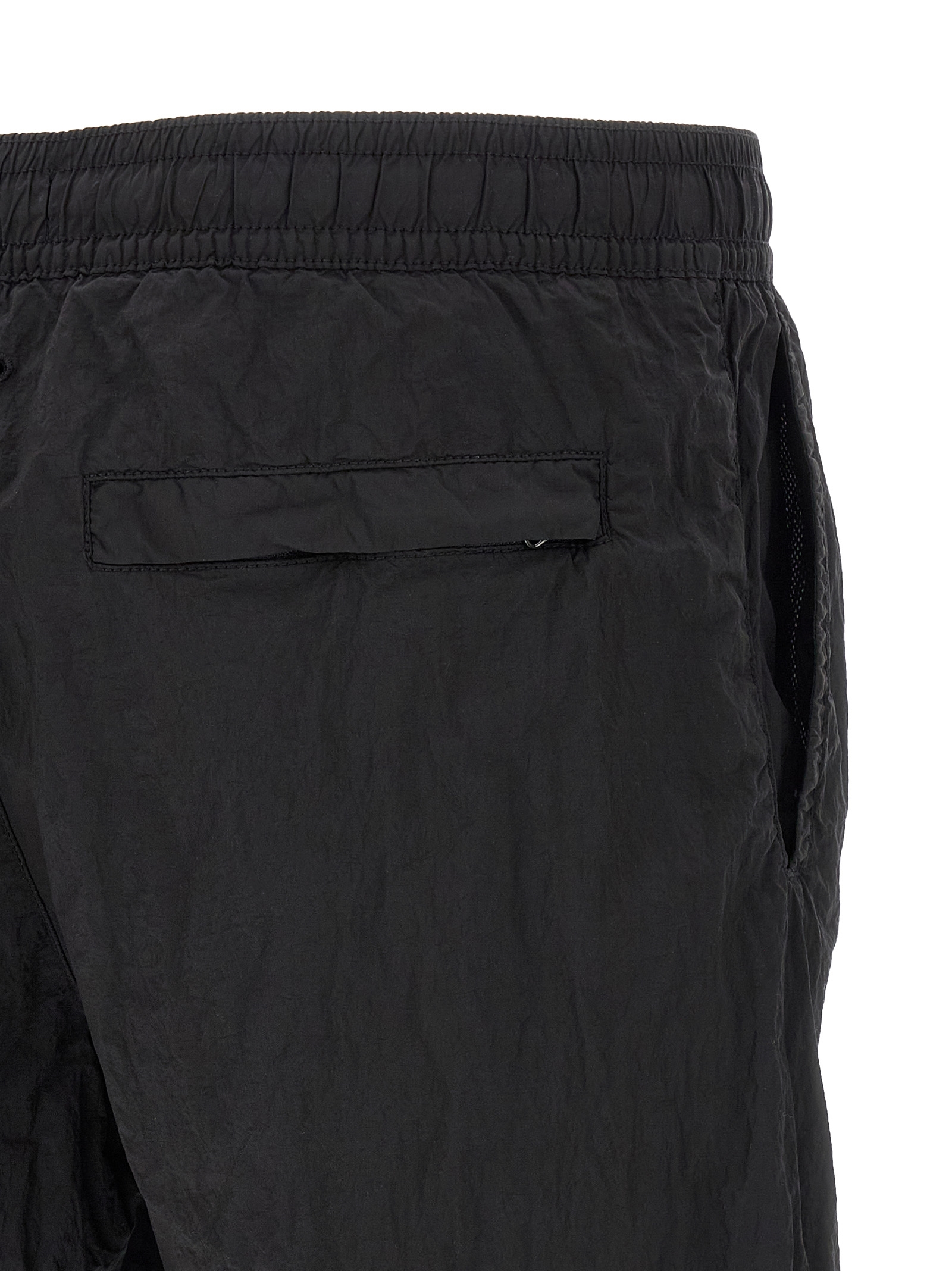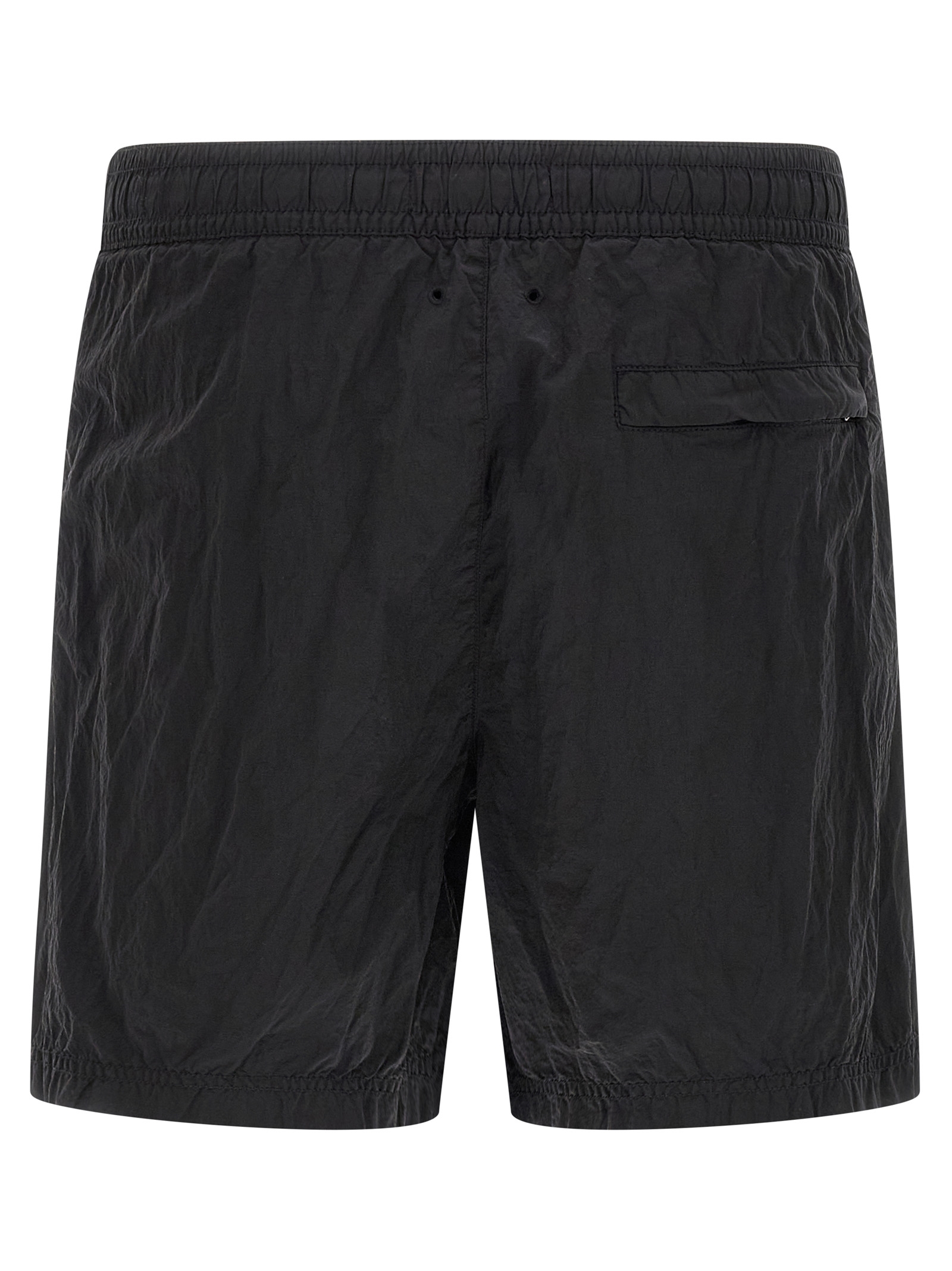 'B100004' swimsuit in garment-dyed Nylon Metal with a wrinkled-effect two-color recipe, 'Compass' logo patch, drawstring elastic waistband, trompe l'oeil flap, pockets, inner briefs in mesh nylon mesh. SUSTAINABLE: This product is made of ECONYL regenerated nylon.®