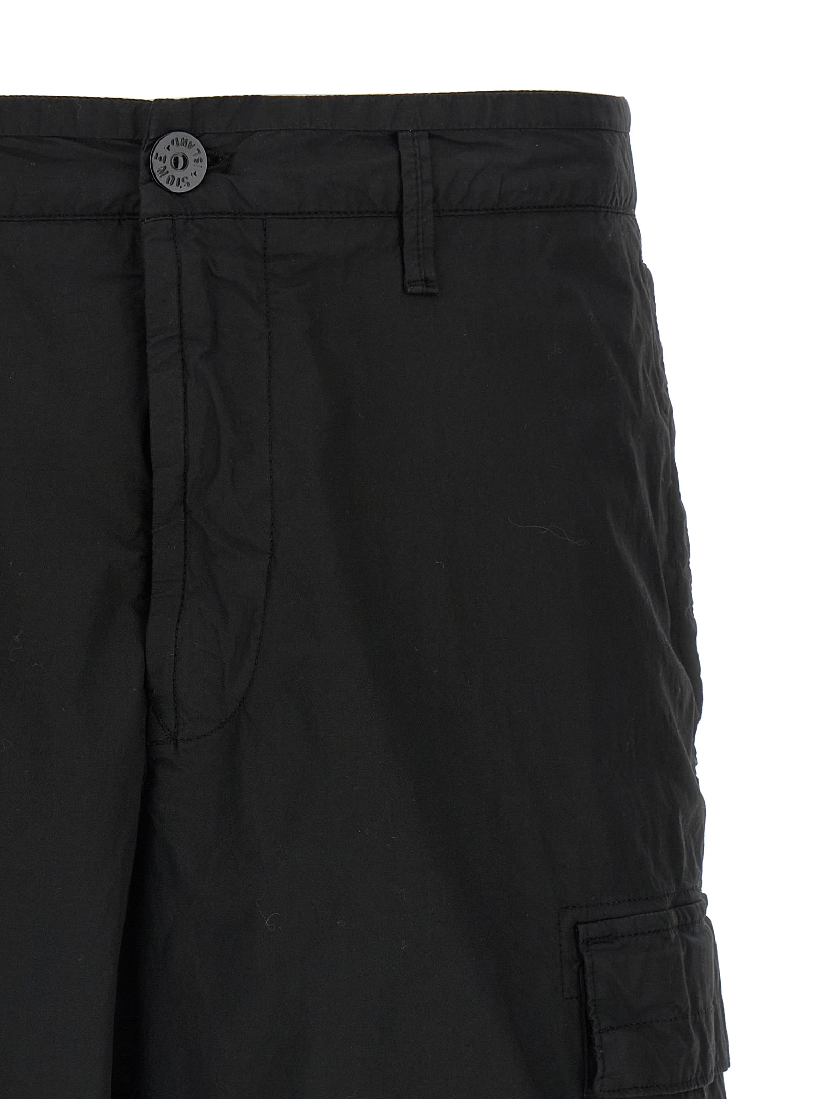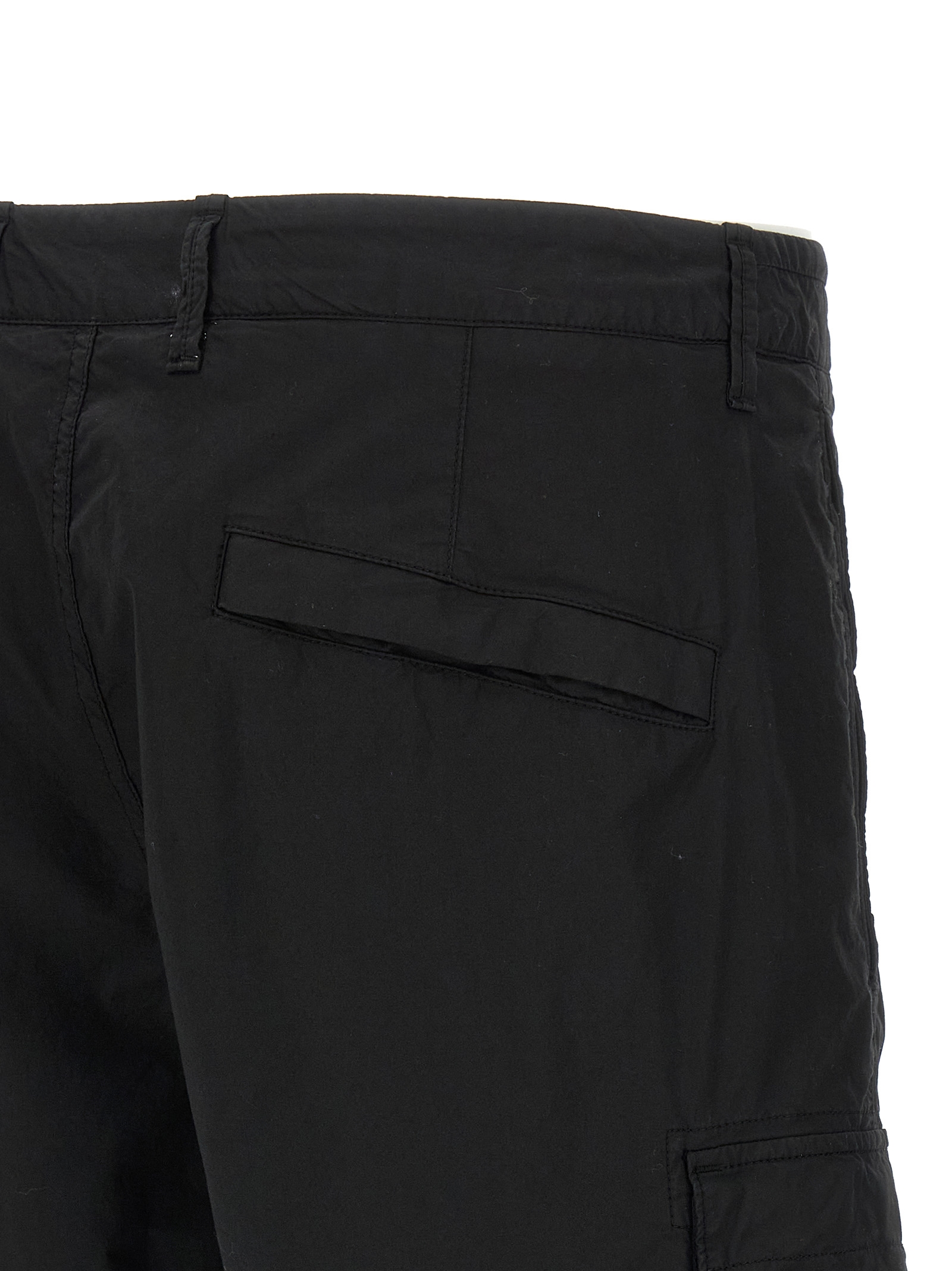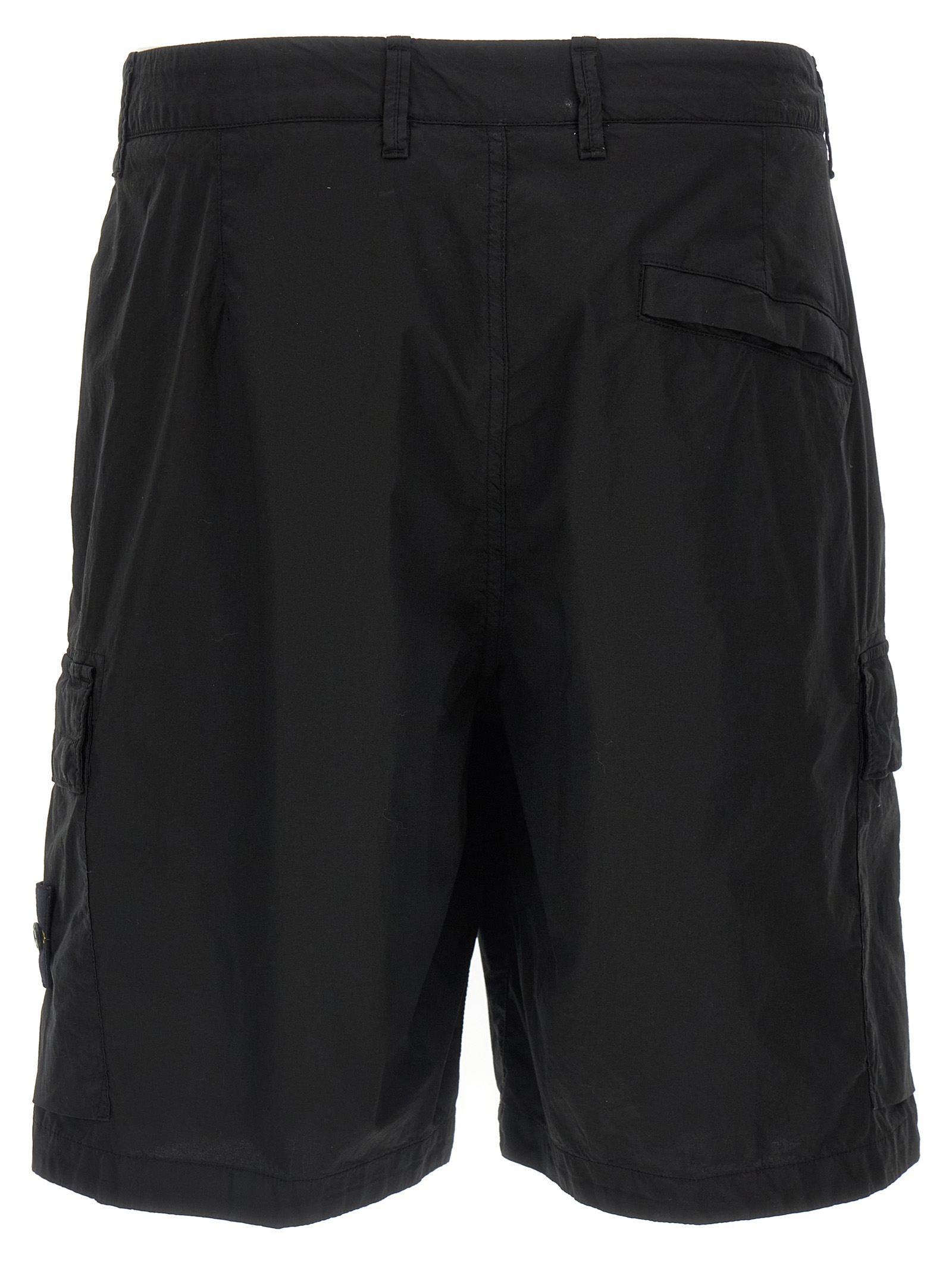 'L100020' bermuda shorts in light 'Paracadute' garment-dyed stretch cotton canvas, cargo style with side pockets and logo badge, zip and front button closure, pockets.