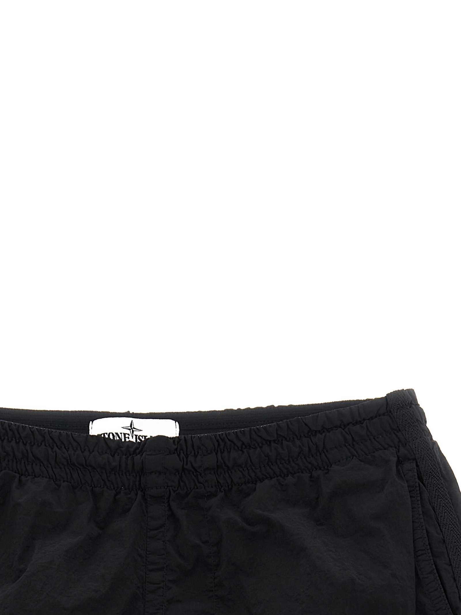 Garment-dyed Nylon Metal swimsuit with a wrinkled-effect two-color recipe, 'Compass' logo patch, drawstring elastic waistband, trompe l'oeil flap, pockets, inner briefs in mesh nylon mesh. SUSTAINABLE: This product is made of ECONYL regenerated nylon.®