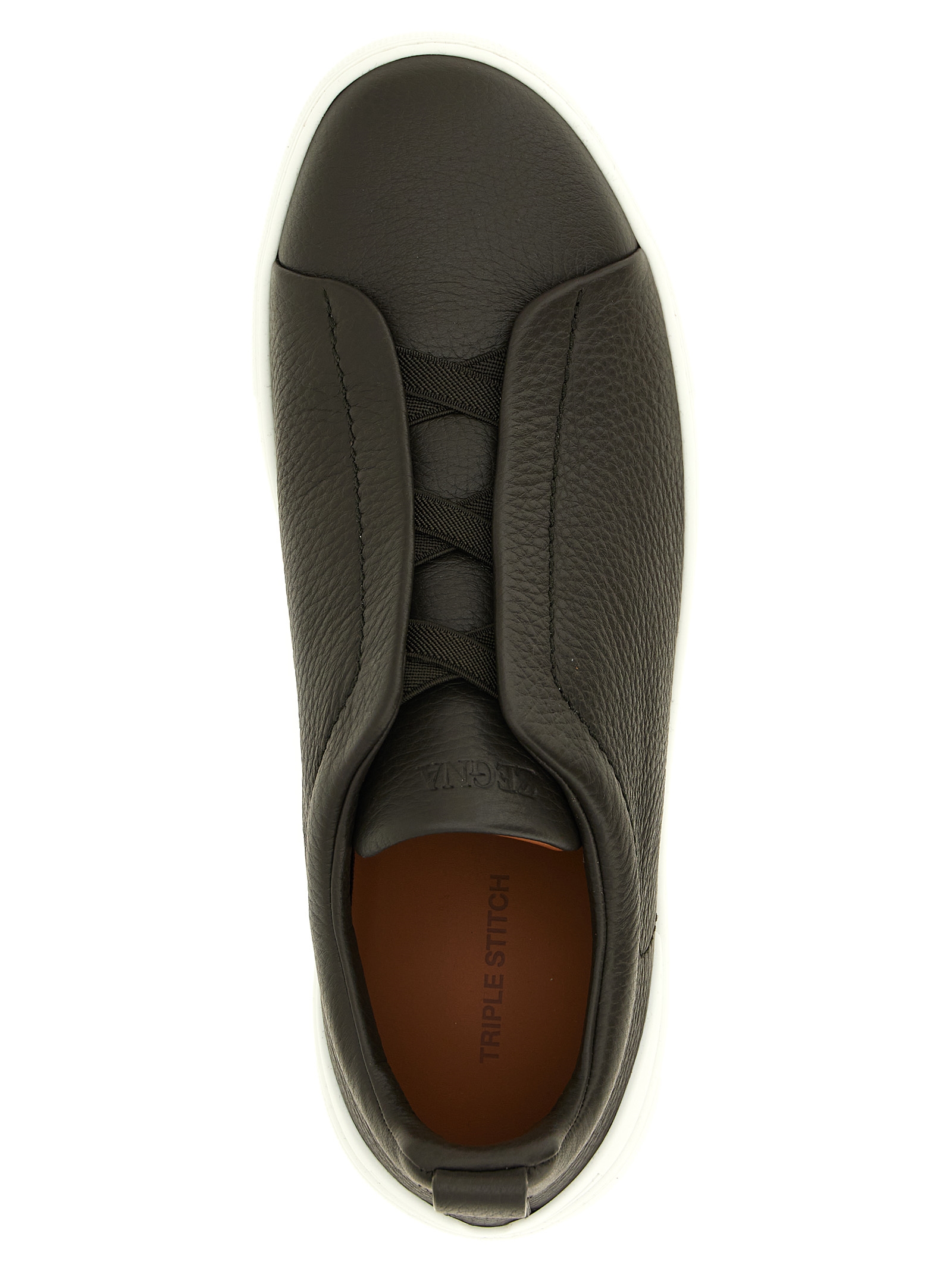'Triple Stitch' hammered leather sneakers, slip-on model with elastic closure and rubber sole.