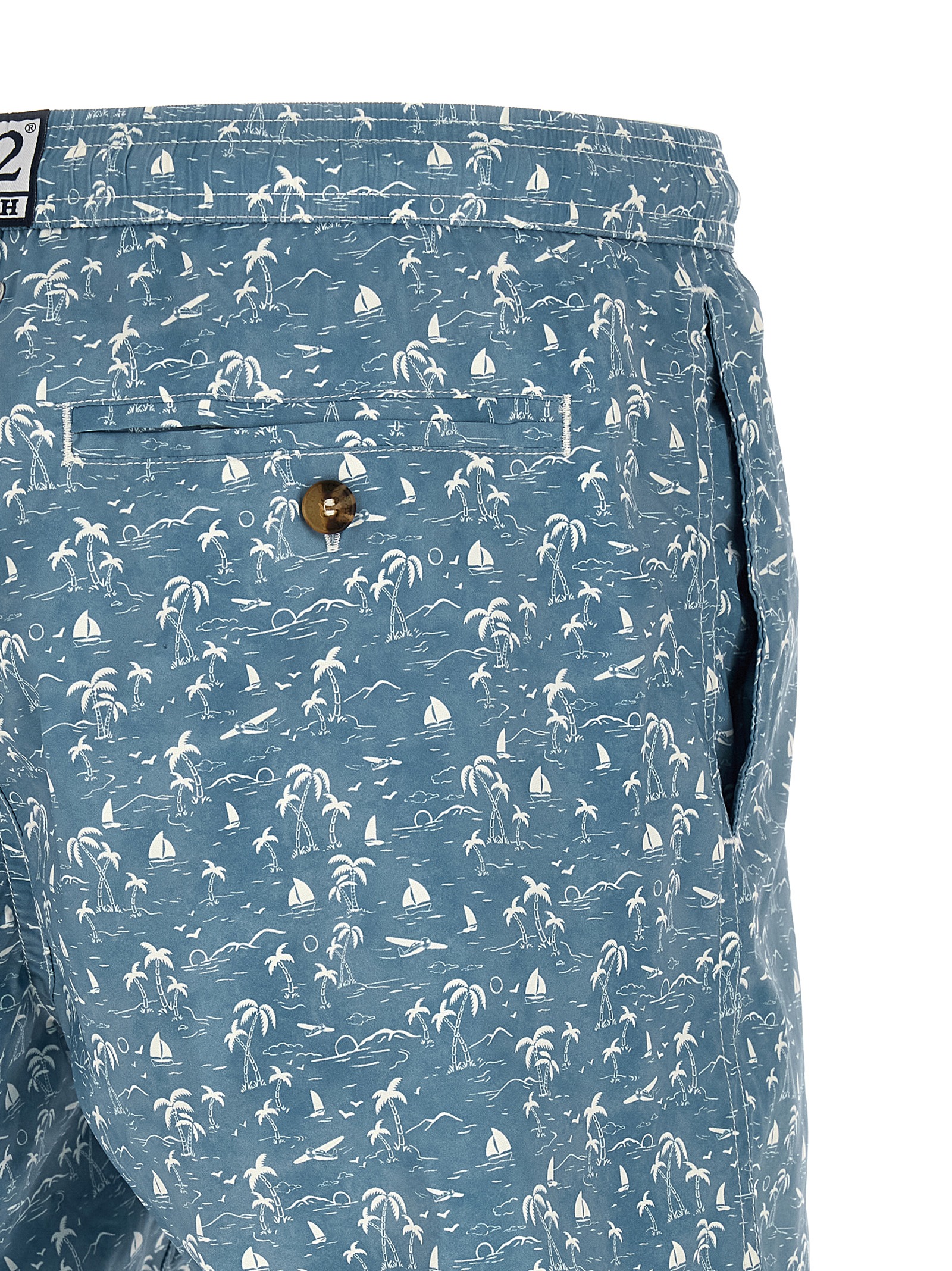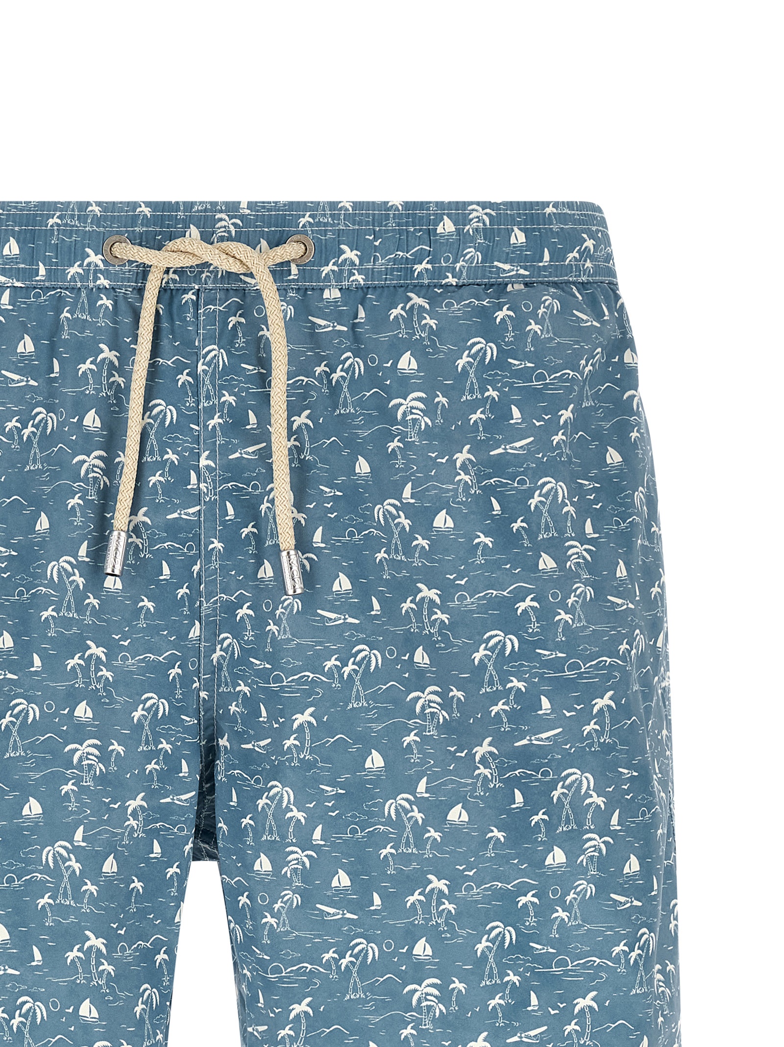 'Lighting' recycled nylon swimsuit with all-over print, elastic waistband and drawstring, logo patch on the back. JULIAN SUSTAINABLE: made in recycled polyester.