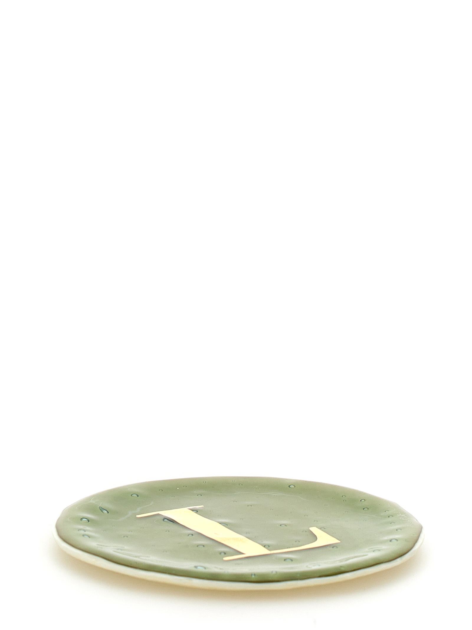 Glass valet tray with the letter 'L' hand-painted in mint gold.