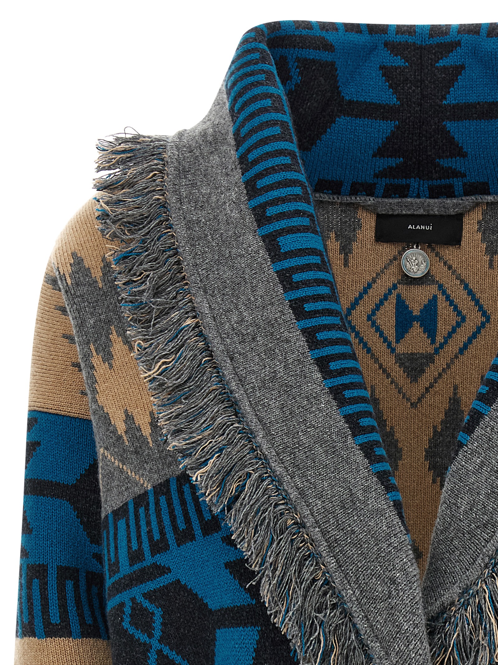 'Icon' cashmere jacquard bomber jacket cardigan with button closure, long cuffed sleeves.