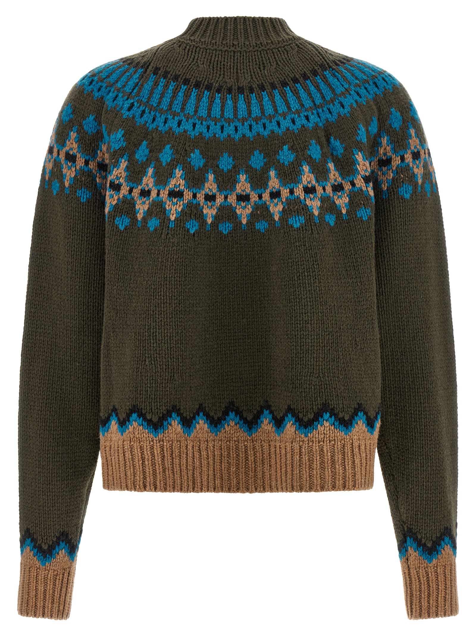 'Sweet Winter' virgin wool jacquard sweater with 'Fair Isle' pattern, crew neck, long cuffed sleeves.