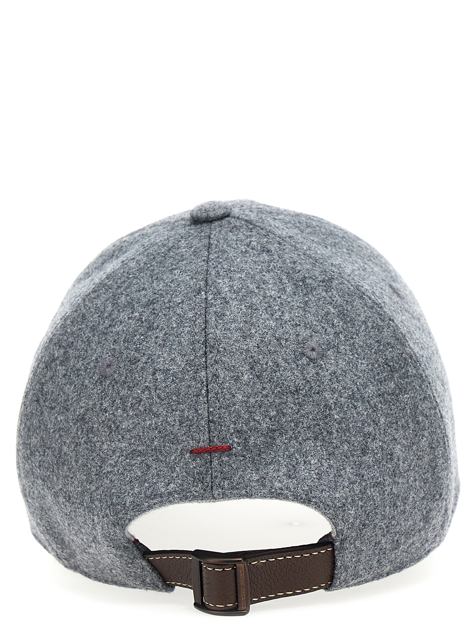 Wool cap with front embroidered logo, adjustable leather strap.
