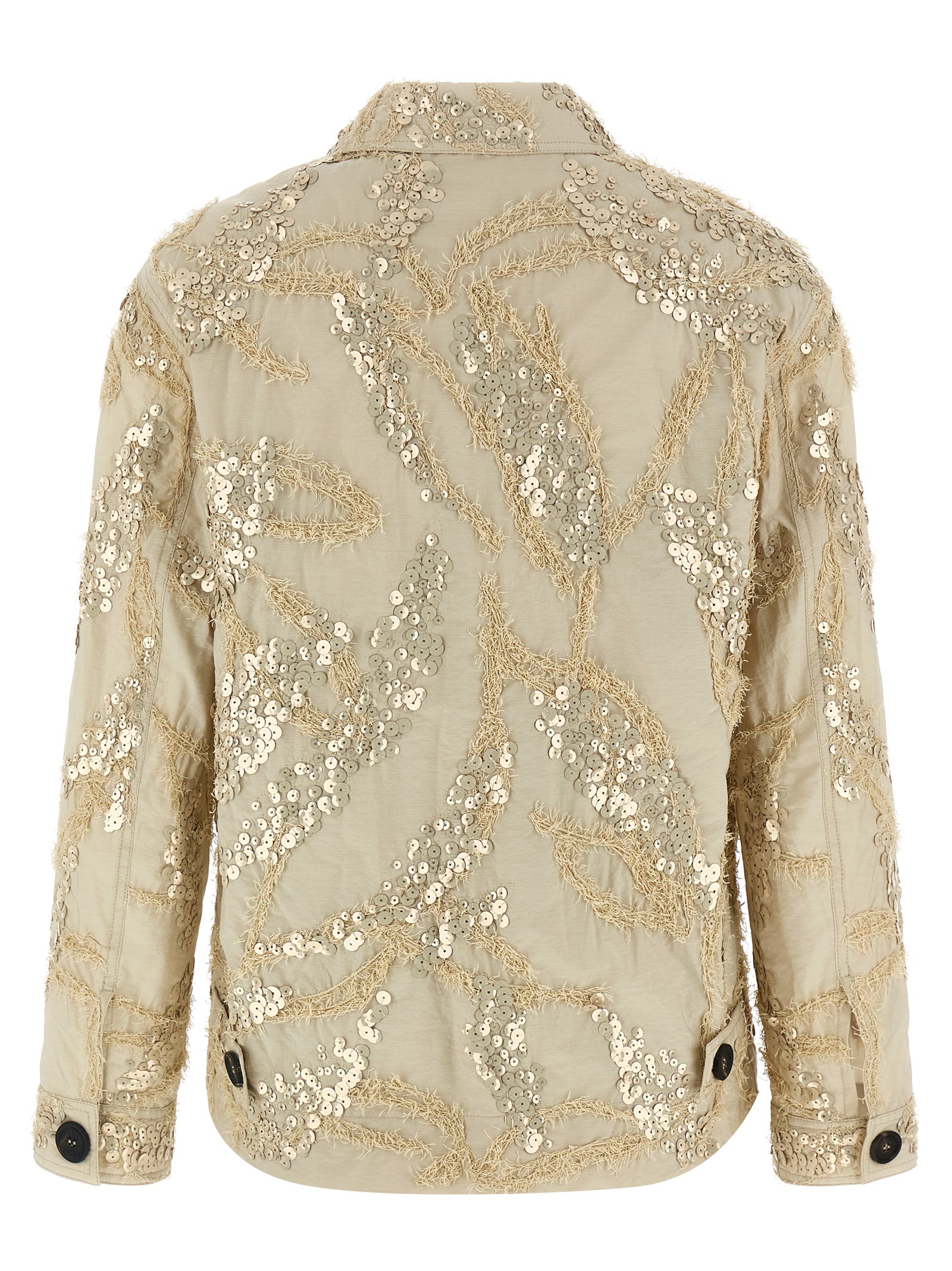 Techno cotton poplin jacket with tonal sequin and raffia embroidered Dazzling Seabed Embroidery, shirt collar, front horn button closure, utility pockets, long cuffed sleeves.Характеристики товара