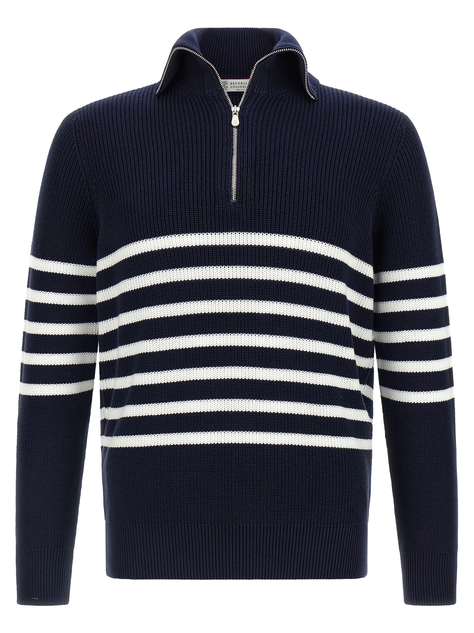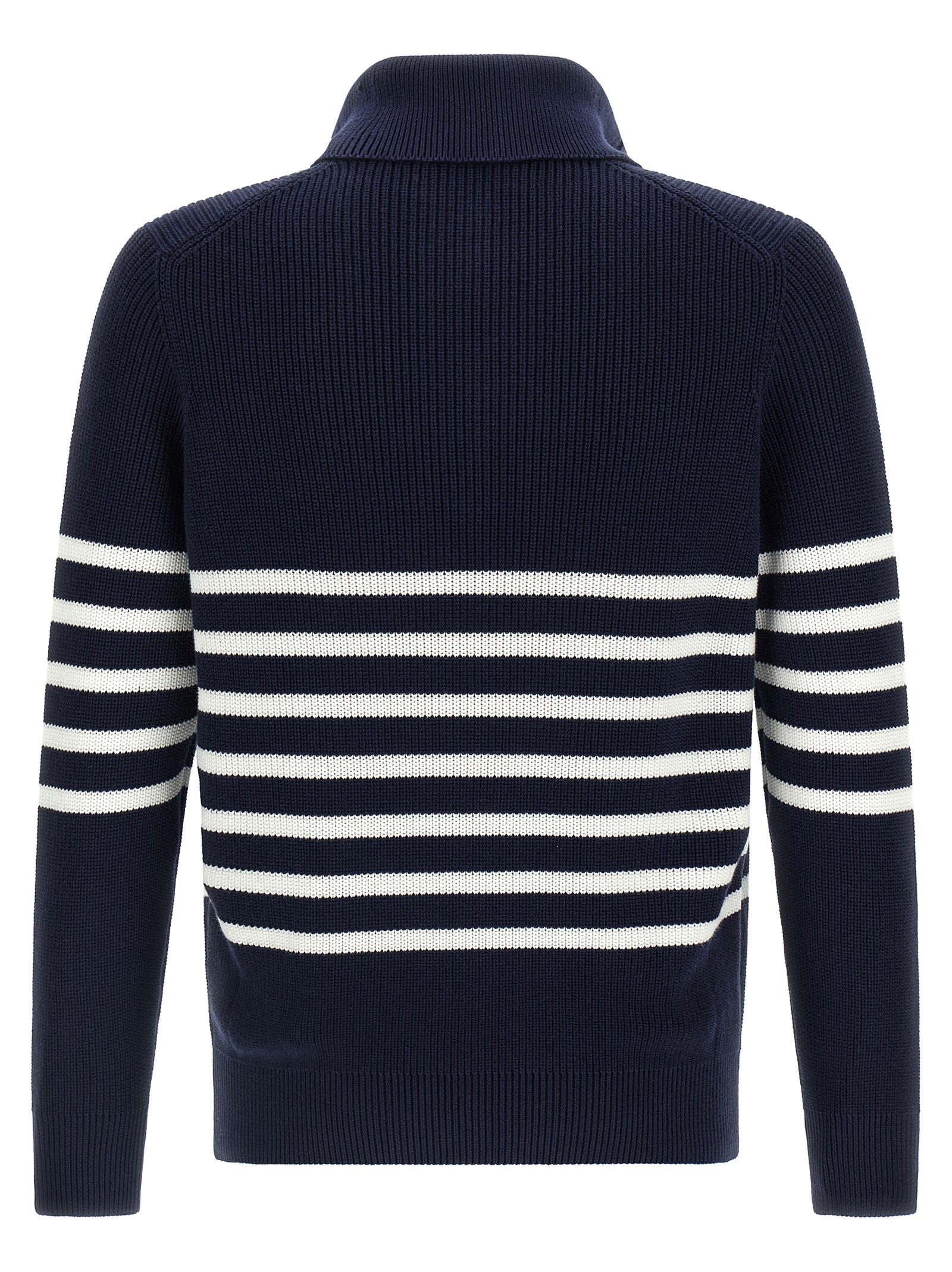 English half-ribbed striped cotton sweater, half zip, high neck to be turned up as desired, long sleeves with cuffs.Характеристики товара