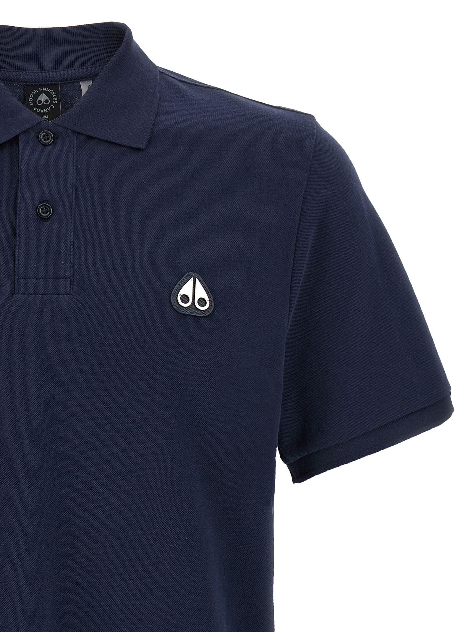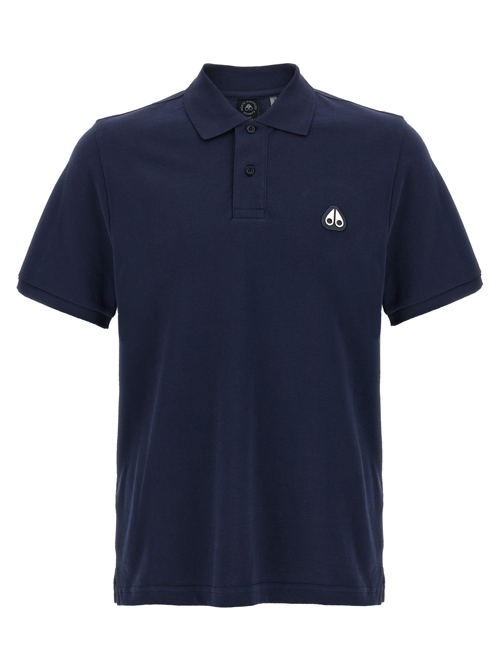 'Everett' cotton piqué polo shirt, leather patch with front metal logo, collar and buttons, short sleeves, side splits.