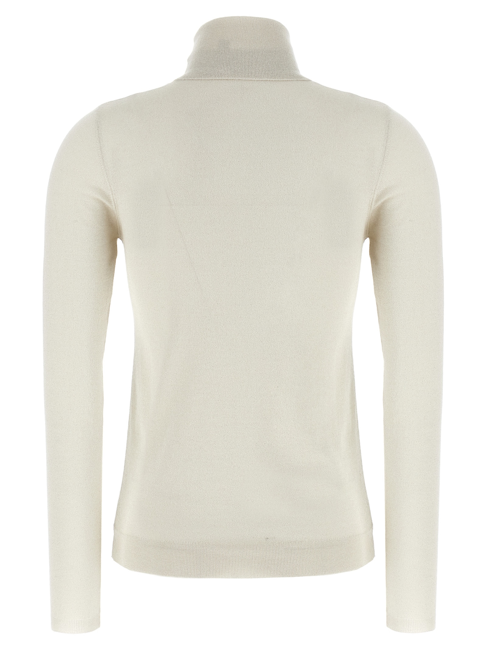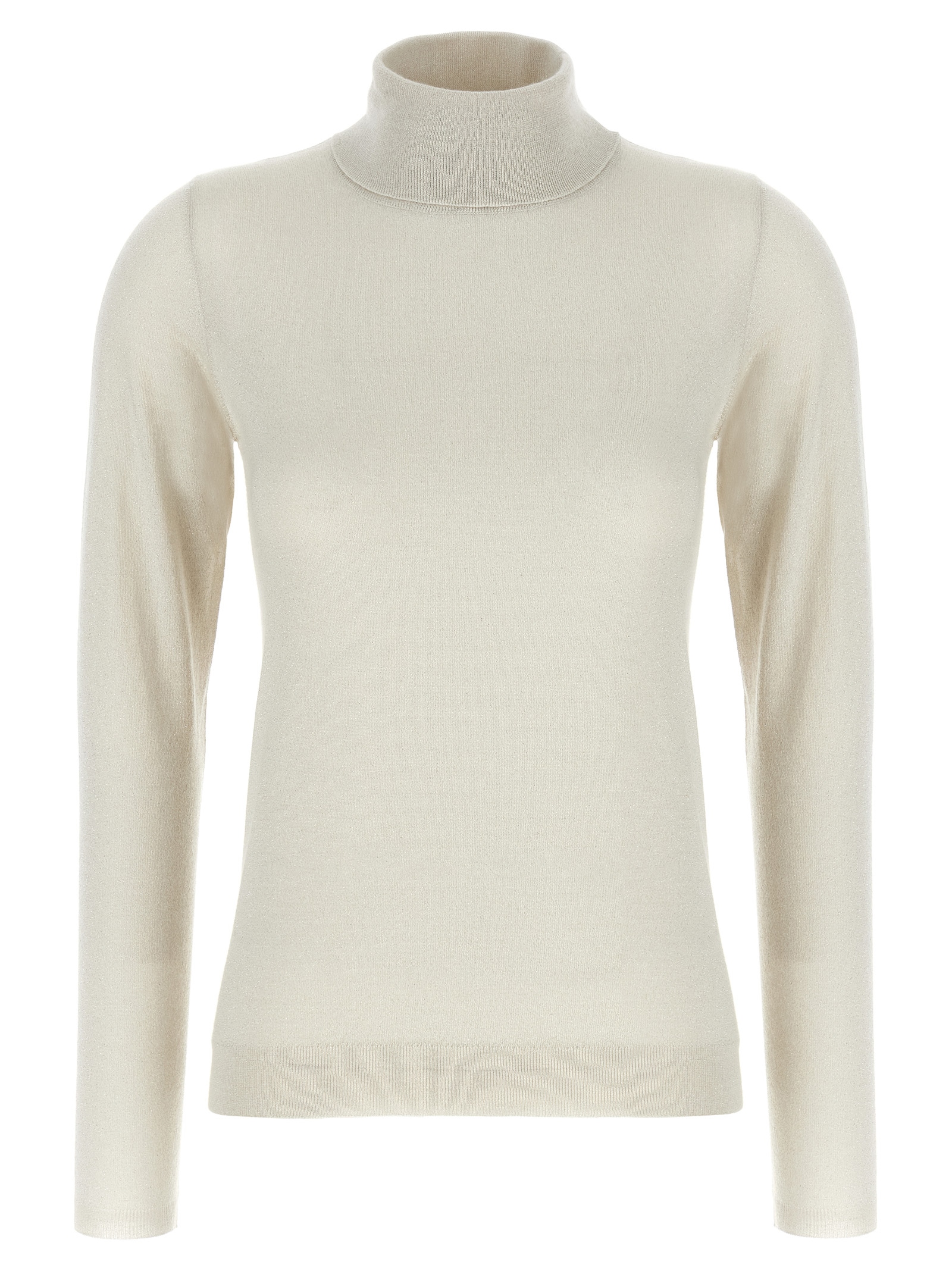 'Sparkling' cashmere and silk blend turtleneck sweater with lamé thread, high neck, long cuffed sleeves.