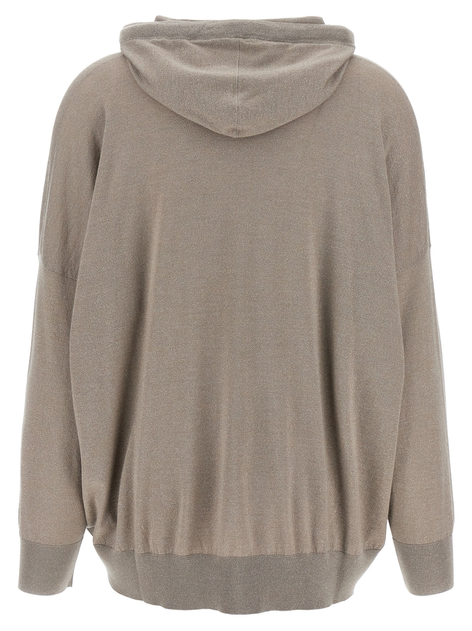 'Sparkling' cashmere and silk blend sweatshirt with lamé threads, drawstring hood with Monile details, long cuffed sleeves and dropped shoulders.