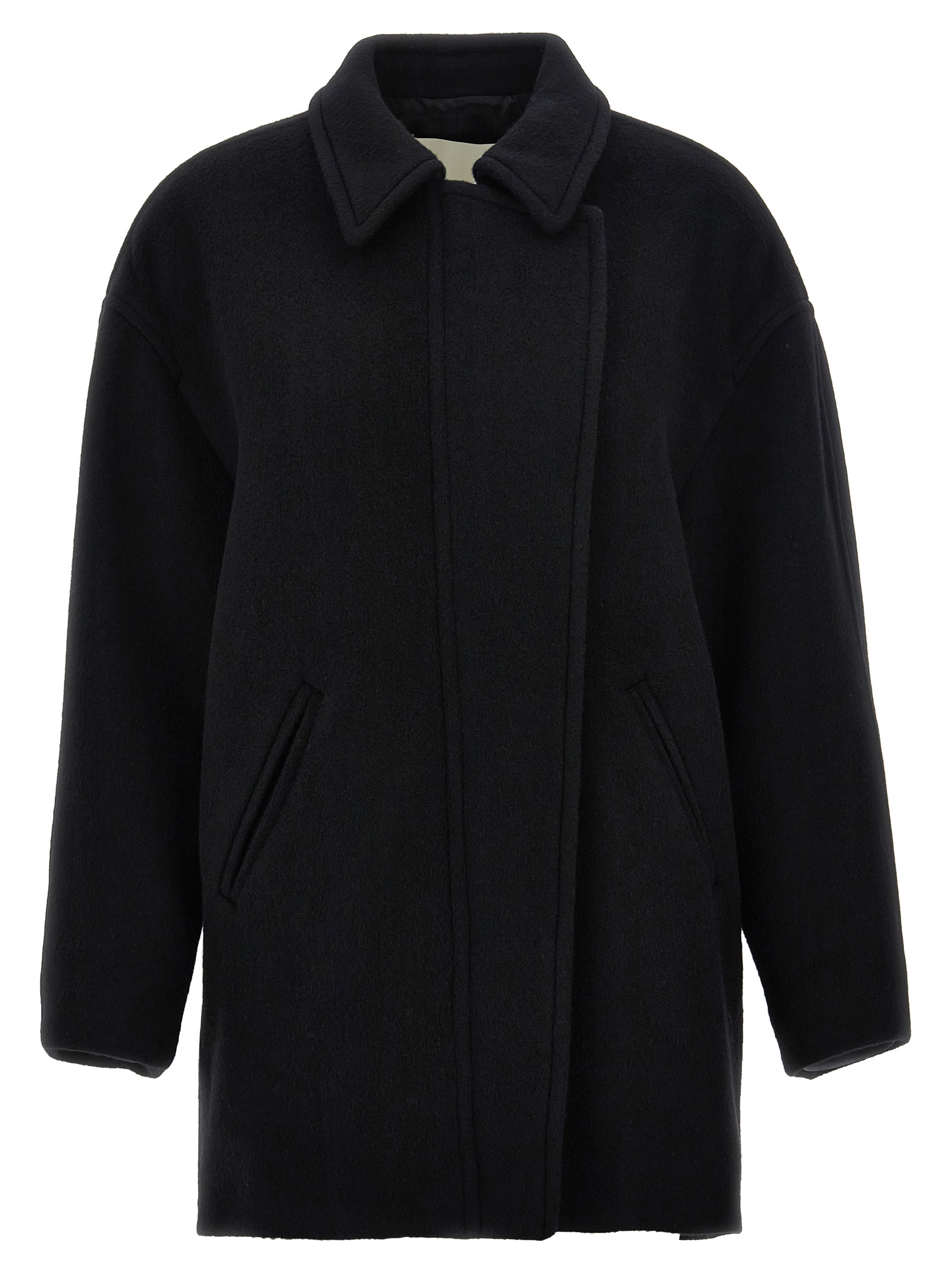 'Eveline' wool blend coat with zip closure, pockets, long sleeves.