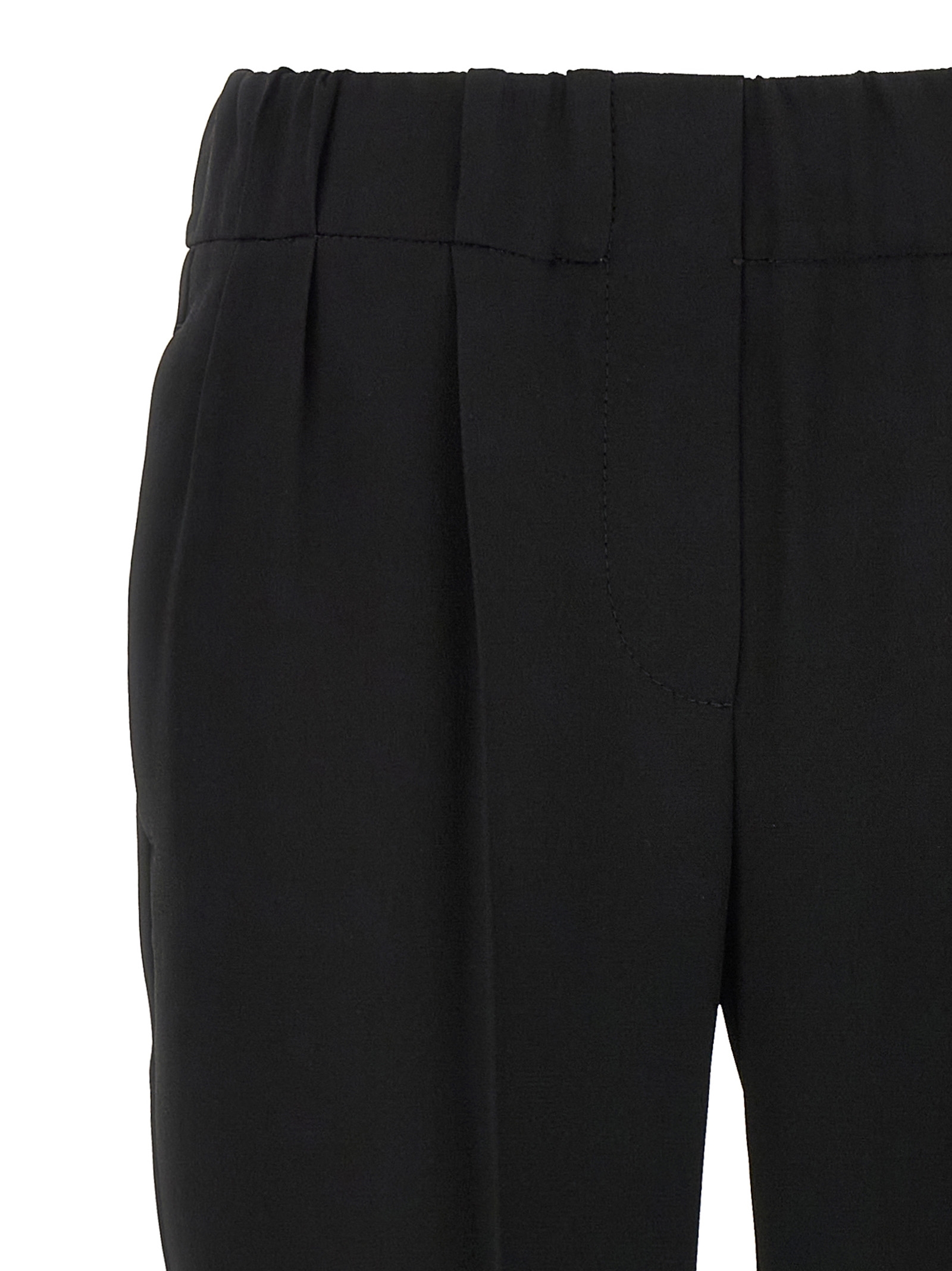 Silk blend trousers, elastic waistband, trompe l'oeil flap, straight leg, ironed pleat and pleat, pockets.Характеристики товара