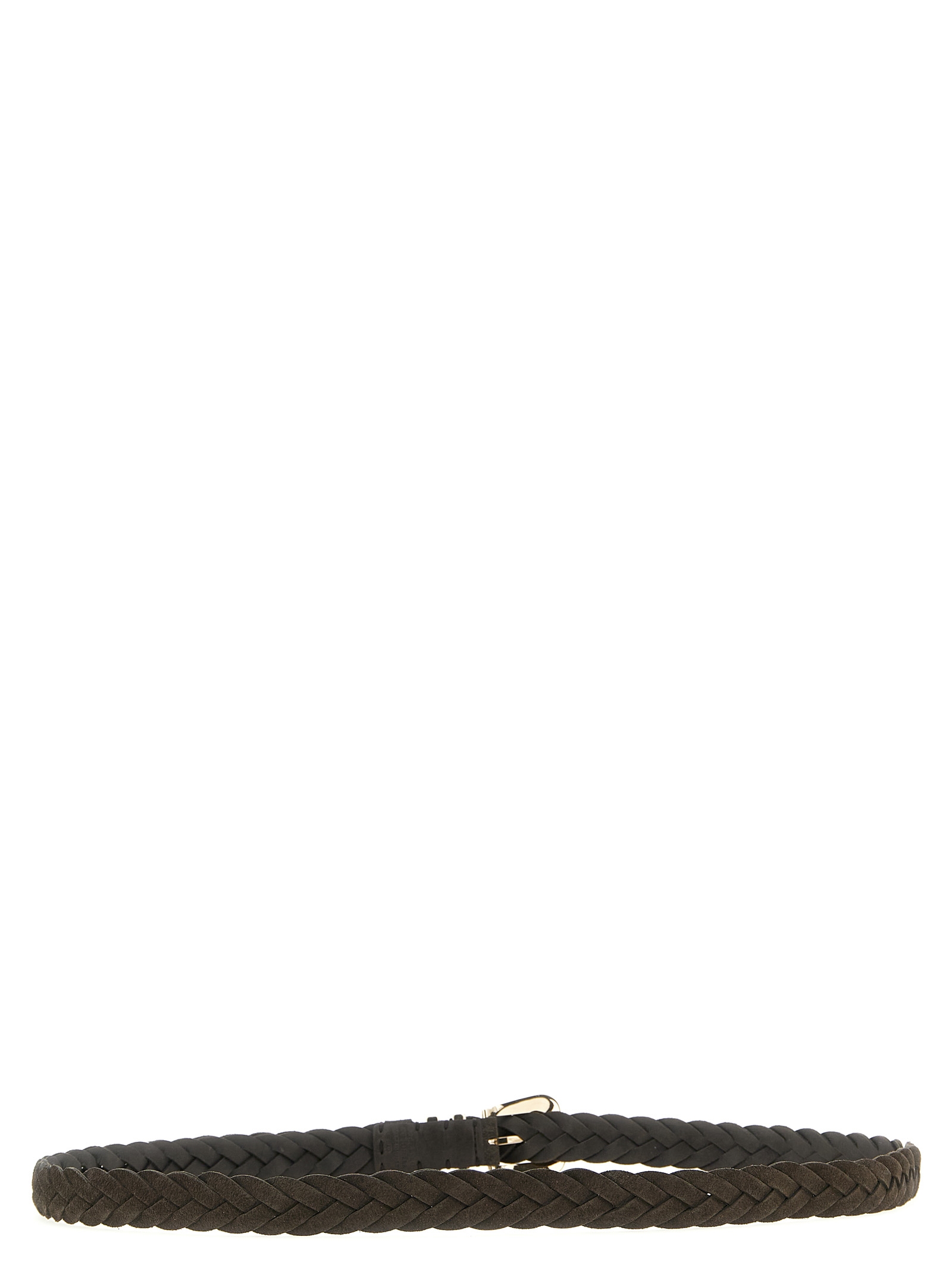 Braided inverted calf leather belt with antiqued metal buckle, toe cap and loops.