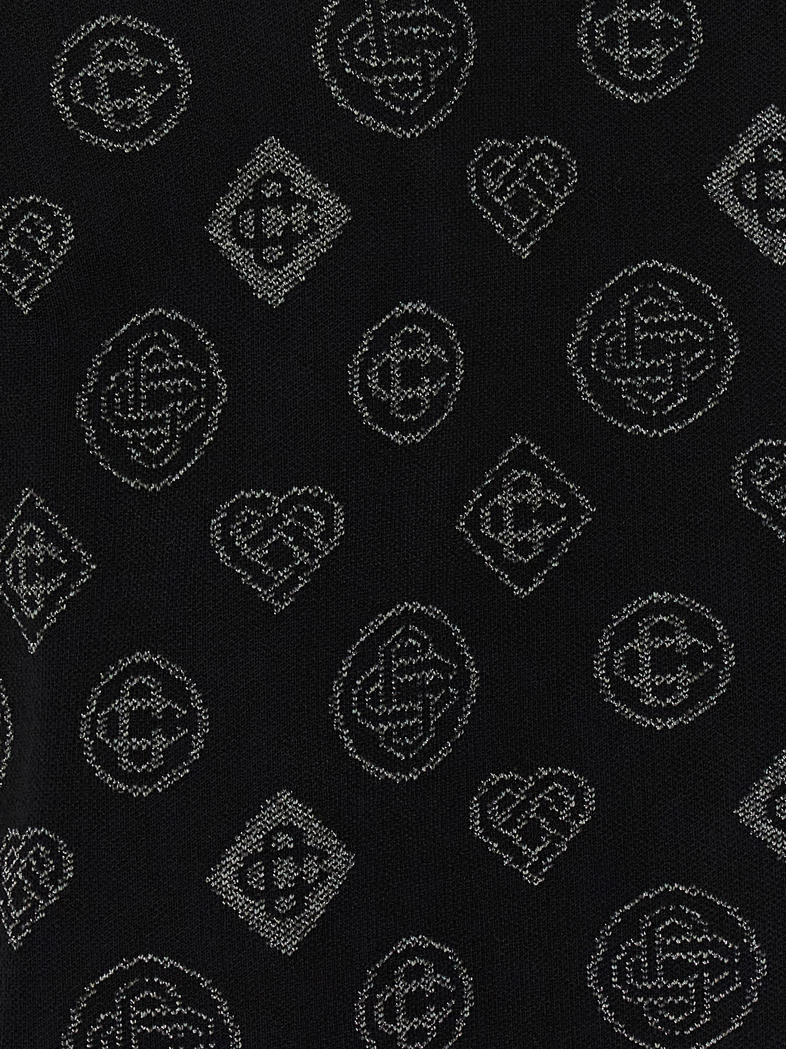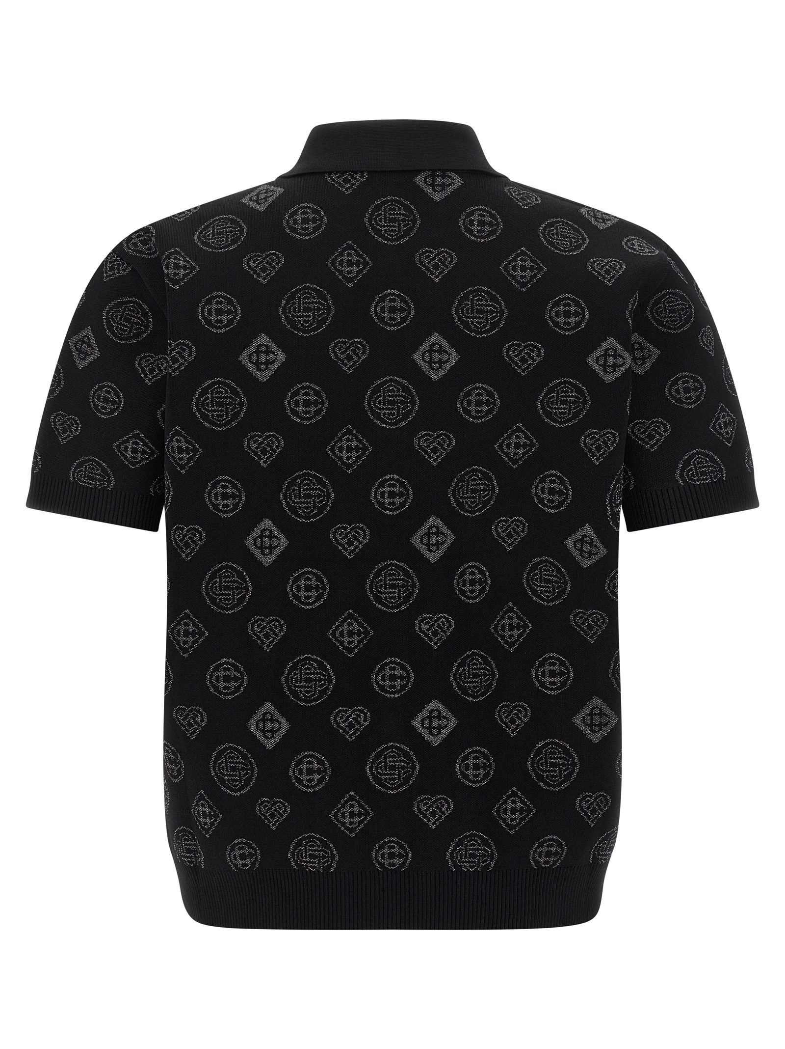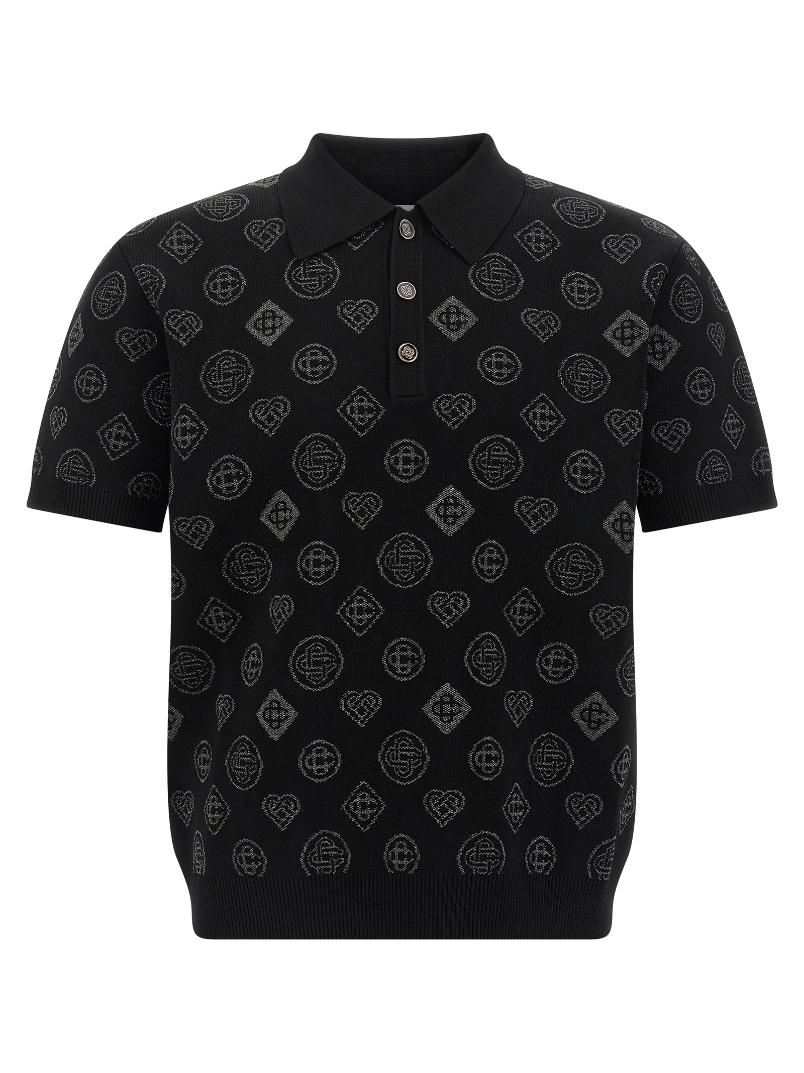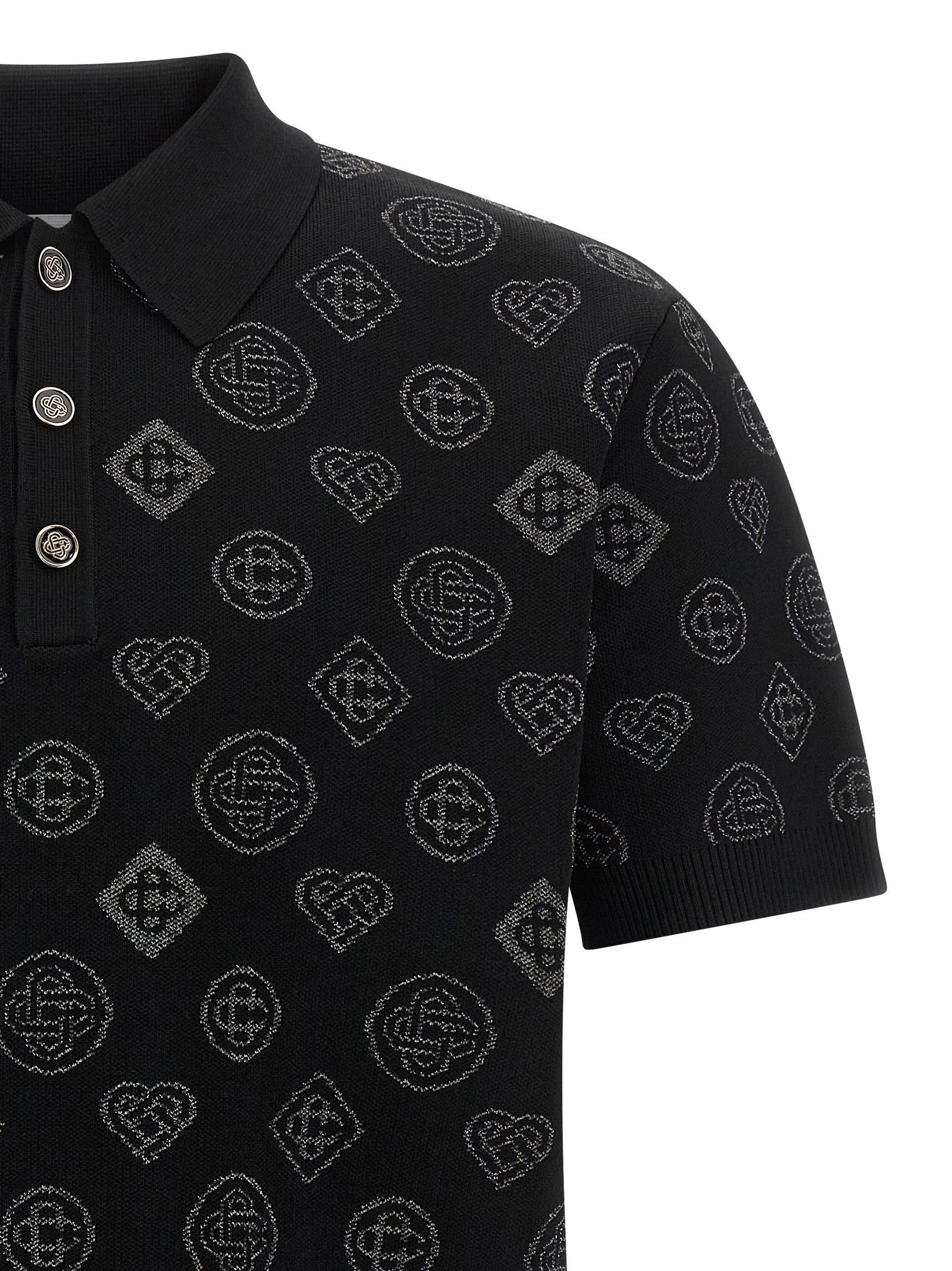 'City' polo shirt in Honeydew monogram jacquard fabric with collar and buttons, short sleeves.
