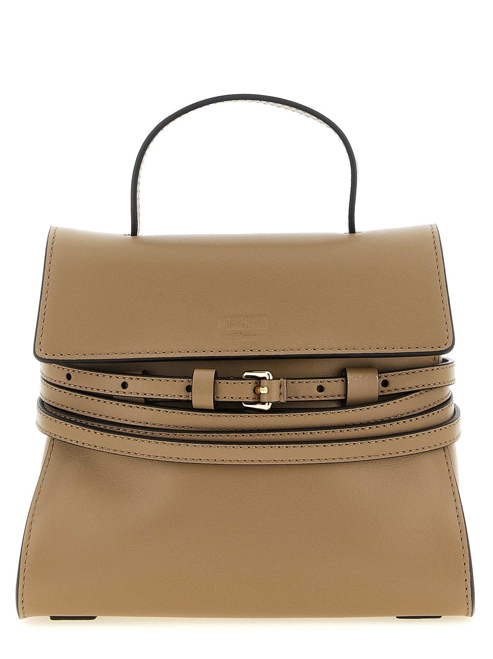 'Tie Me' nappa handbag with fixed handle and adjustable and removable shoulder strap, button closure, buckle strap detail.