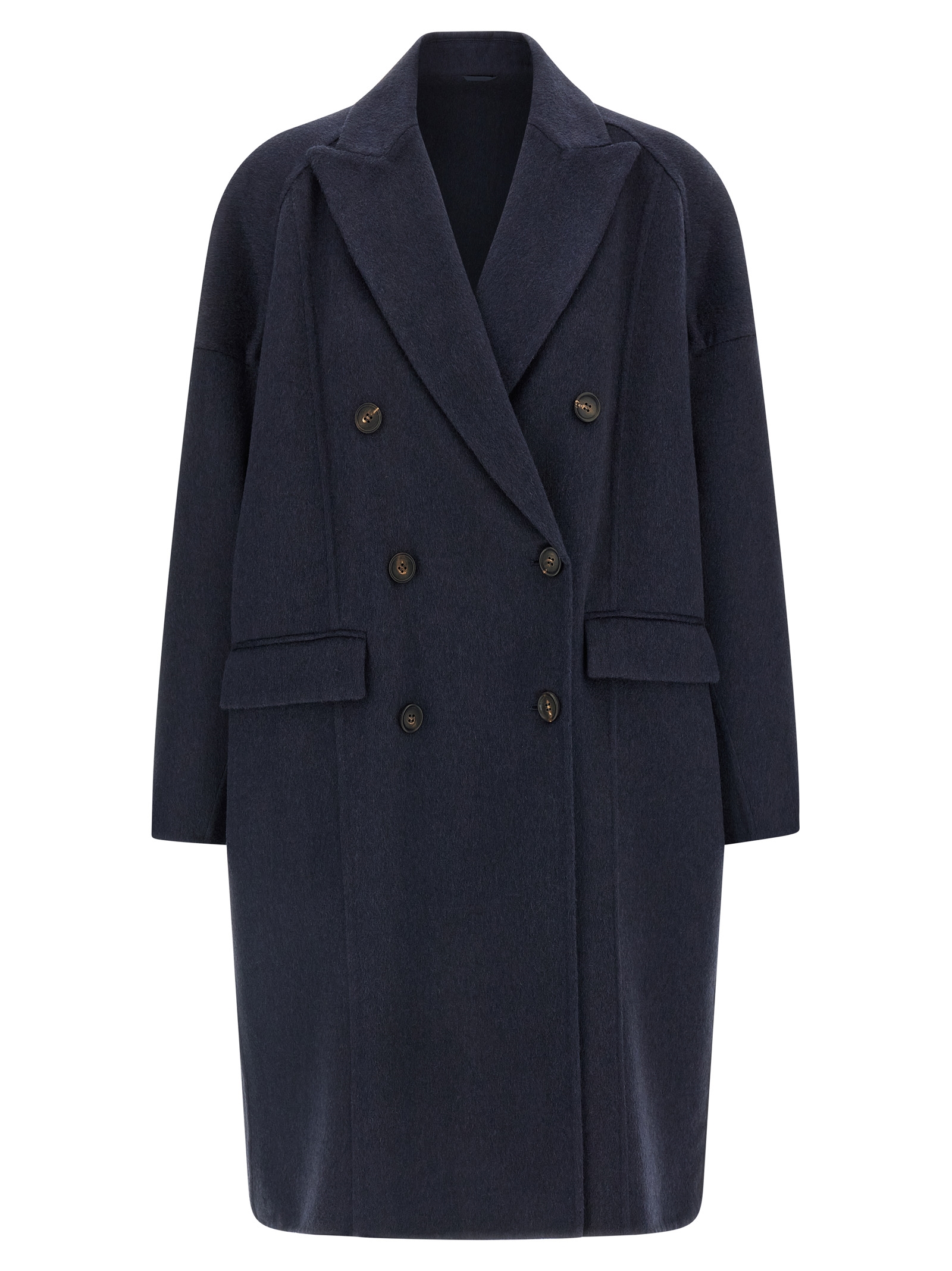 Cashmere coat, unlined, double-breasted with front button closure, peak lapels, pockets, long sleeves with dropped shoulders.Характеристики товара