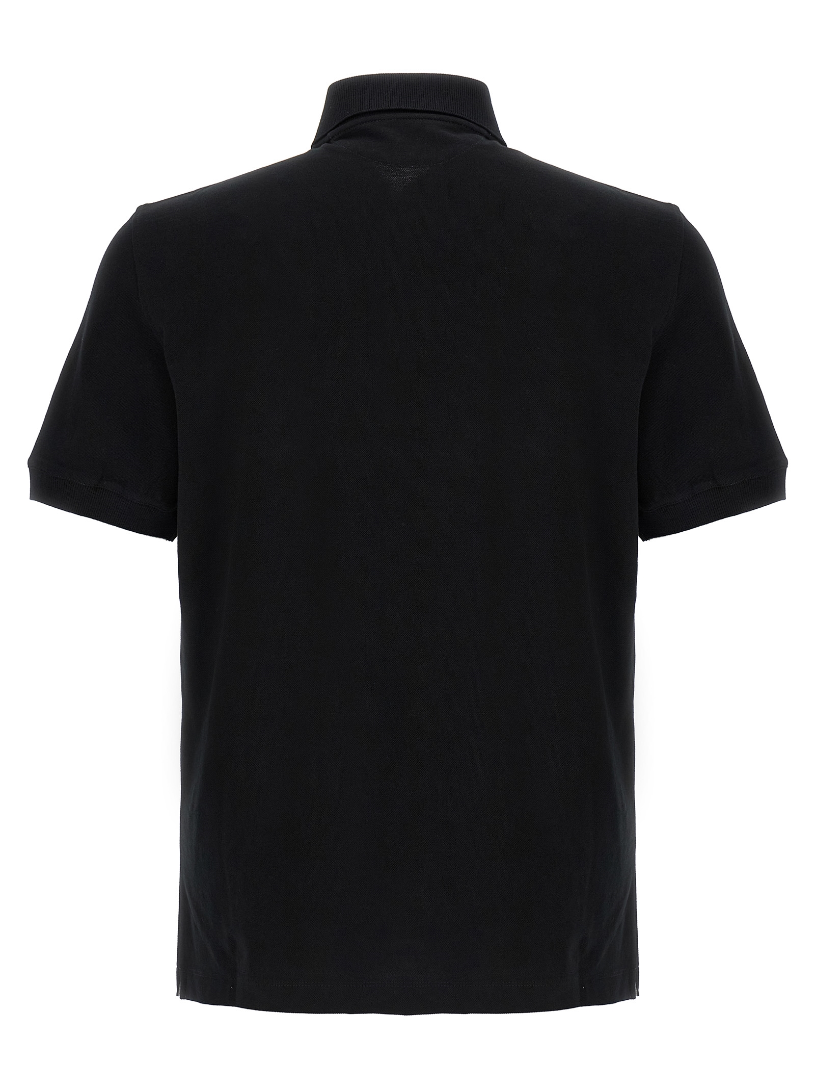 Piqué cotton polo shirt with front logo print, collar and buttons, short sleeves, side vents.