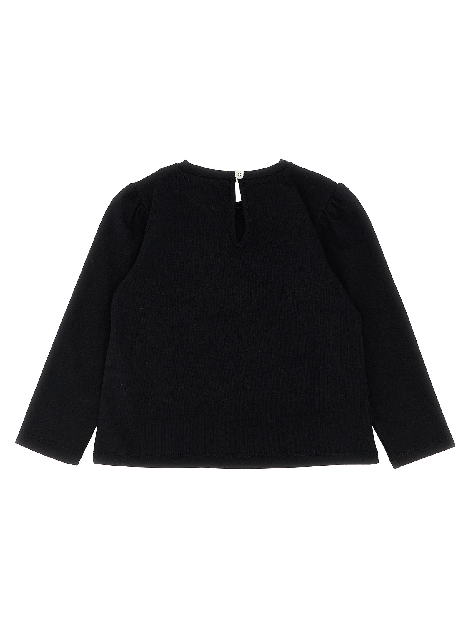 KIDS Cotton jersey T-shirt with 'Moschino Teddy Bear' print with front sequin appliqué, crew neck, back button closure with cut-out teardrop detail, long sleeves.Характеристики товара