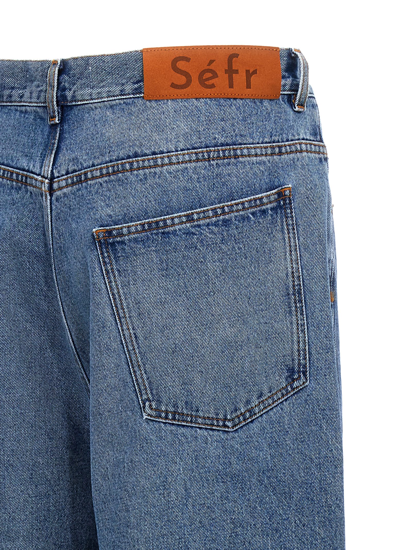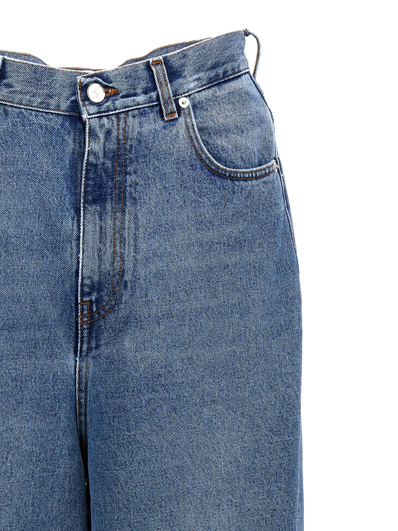 'Disco Cut' cotton denim jeans with zip and button closure, five pockets, suede logo tag.