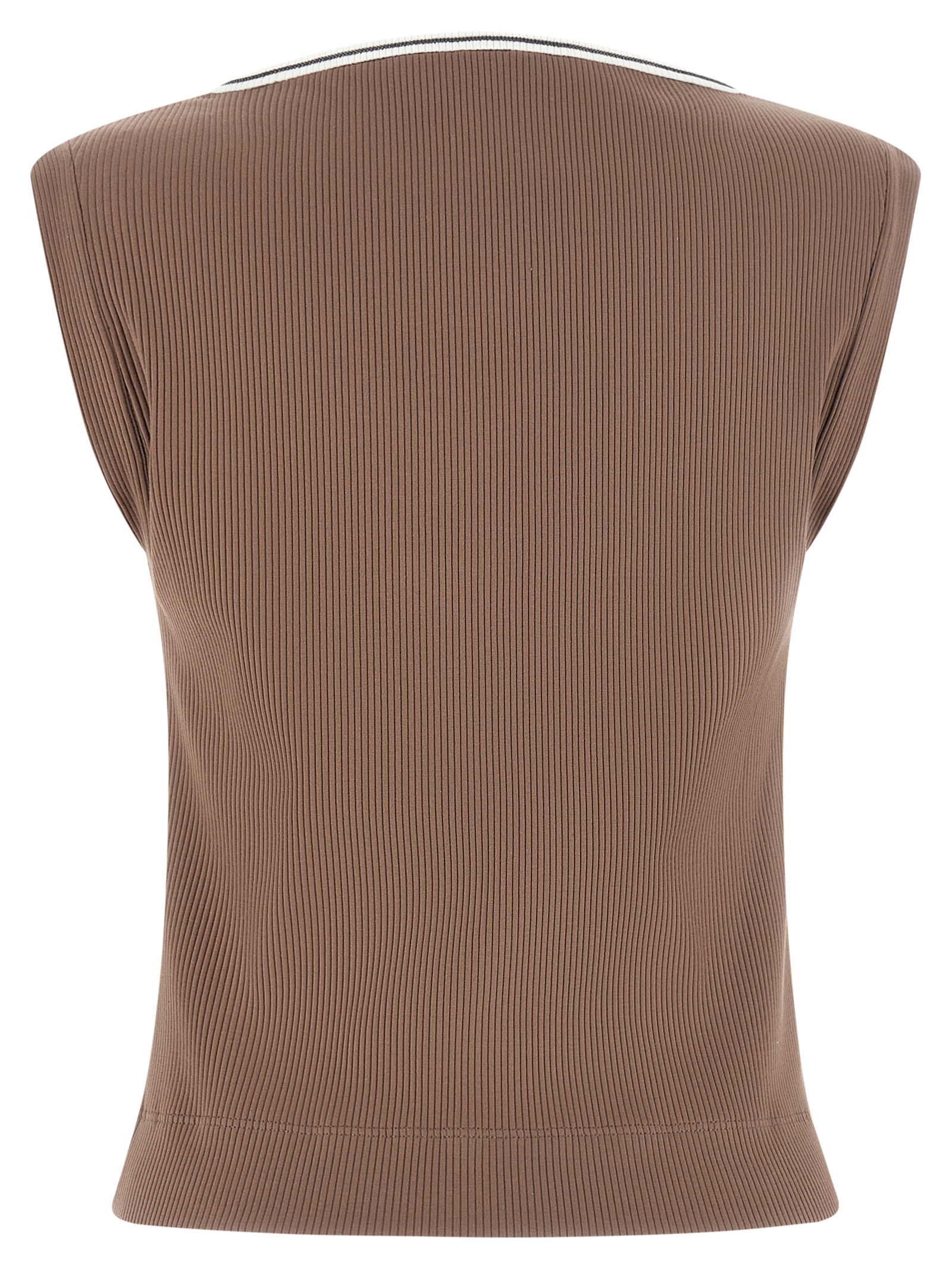 Топ из эластичного хлопкового трикотажа в рубчик с контрастным V-образным вырезом и блестящей отделкой Monile.Характеристики товара