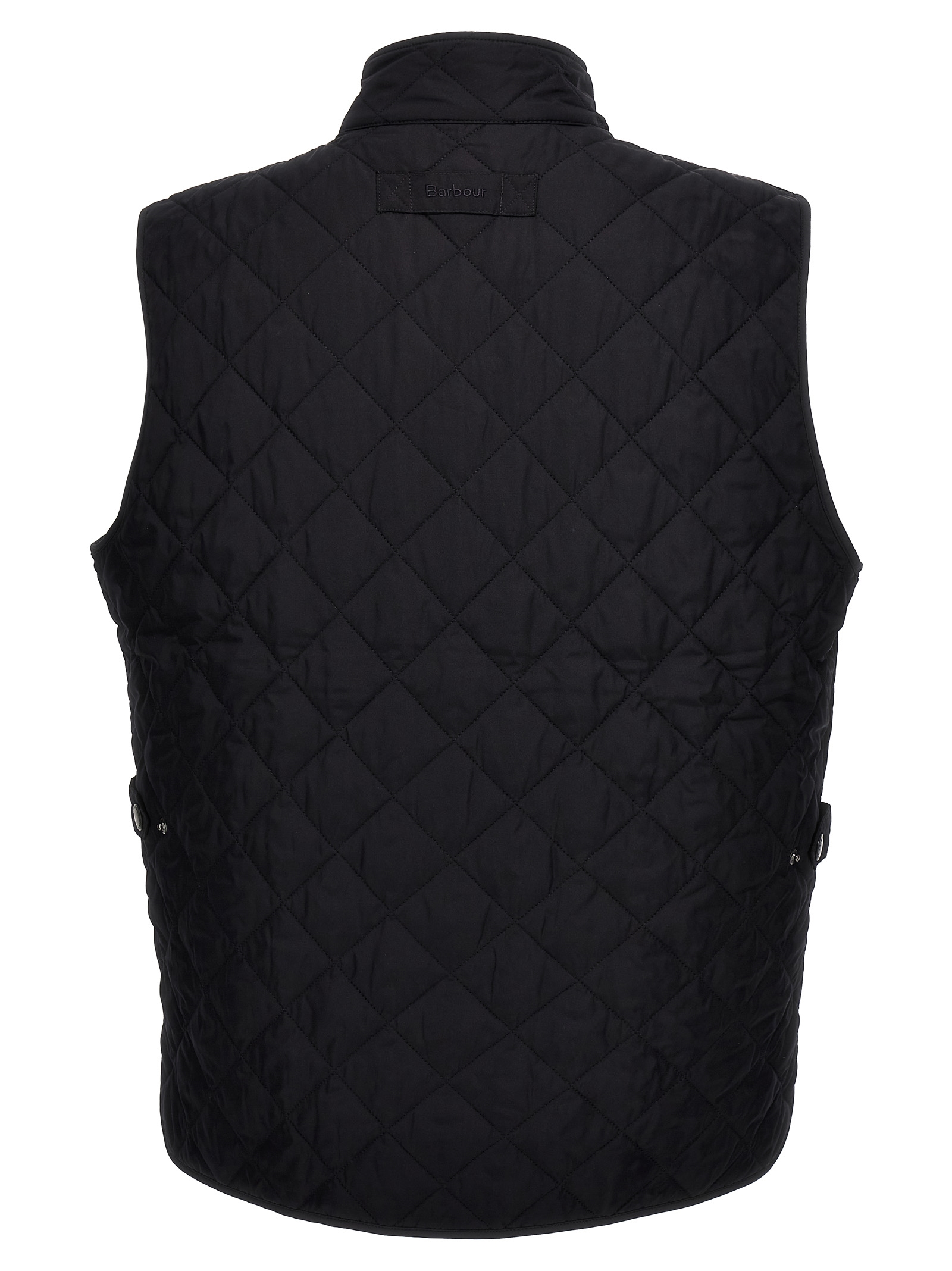 'New Lowerdale' quilted nylon vest, zip and button closure, pockets.
