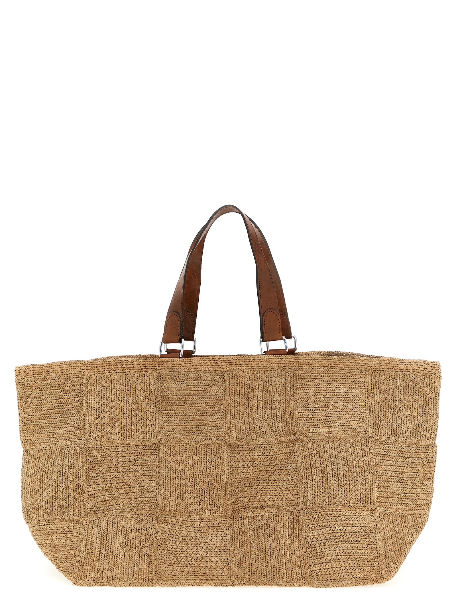 'Miray' crocheted raffia shopping, double fixed leather handle with metal details. Handcrafted product, any imperfections are to be considered characteristics of uniqueness.