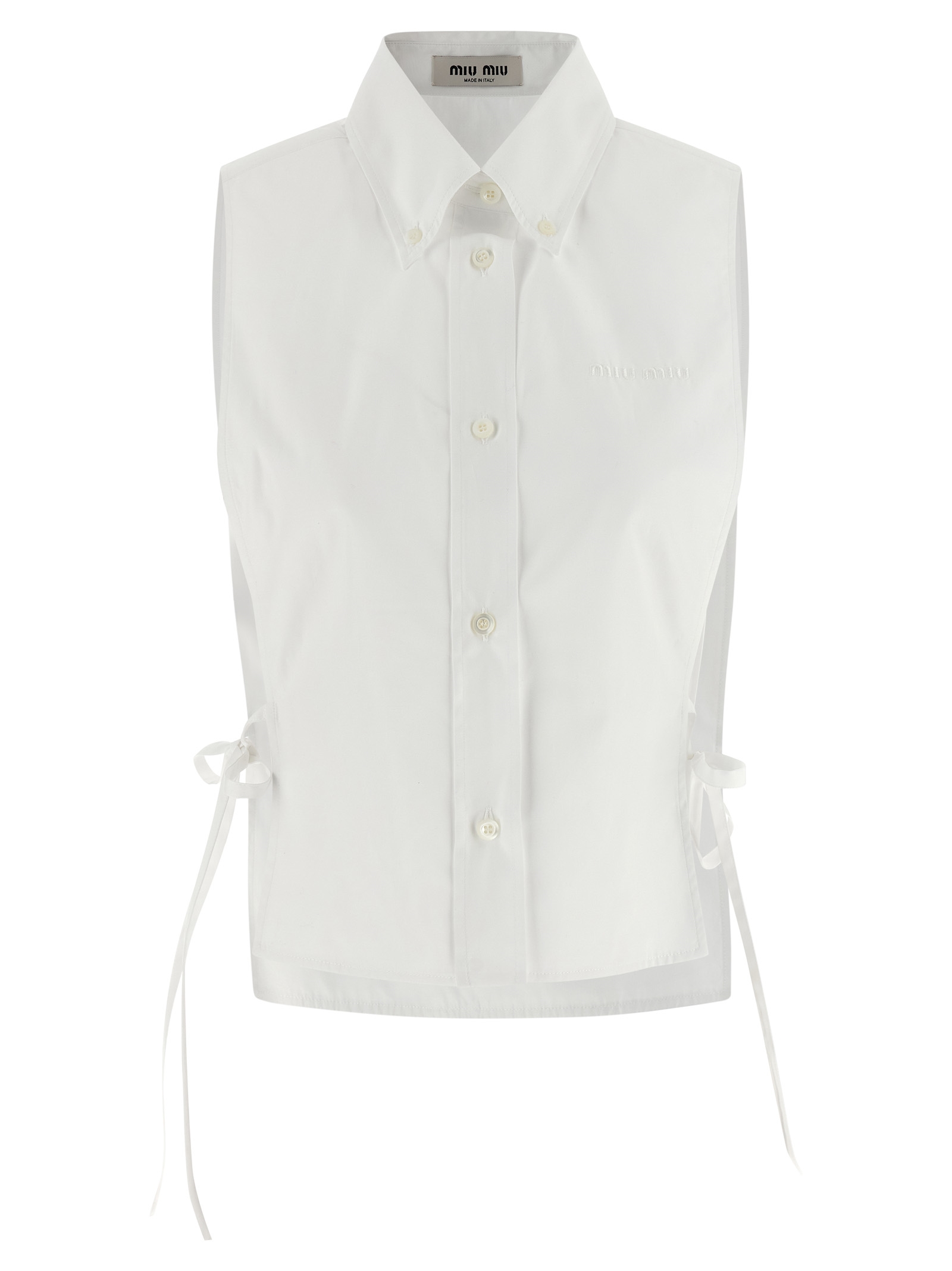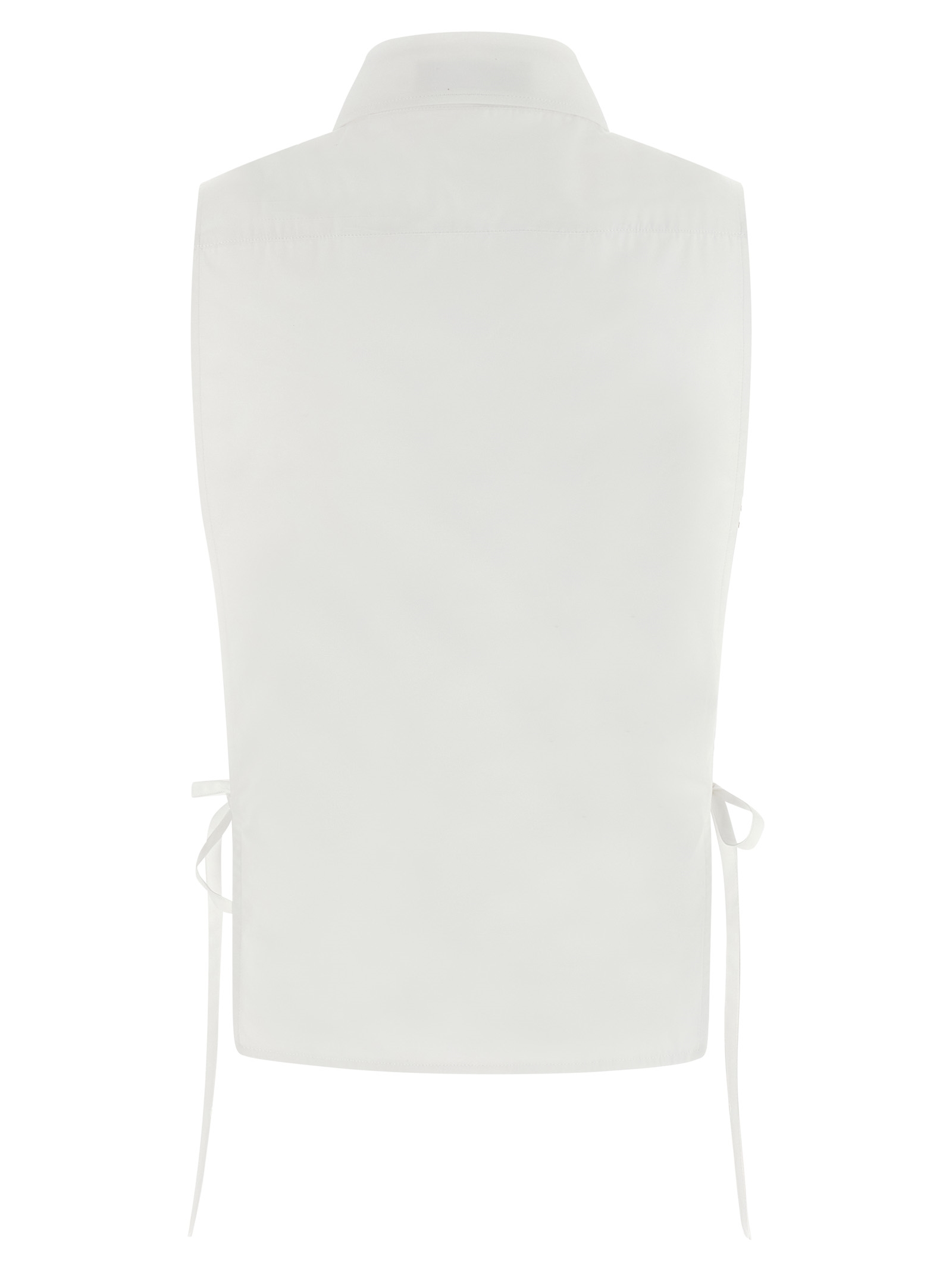 Рубашка из хлопкового поплина, жилет с боковыми разрезами и застежкой на ленту, воротником на пуговицах, вышивкой логотипа в тон и застежкой на пуговицы спереди, асимметричным низом.Характеристики товара