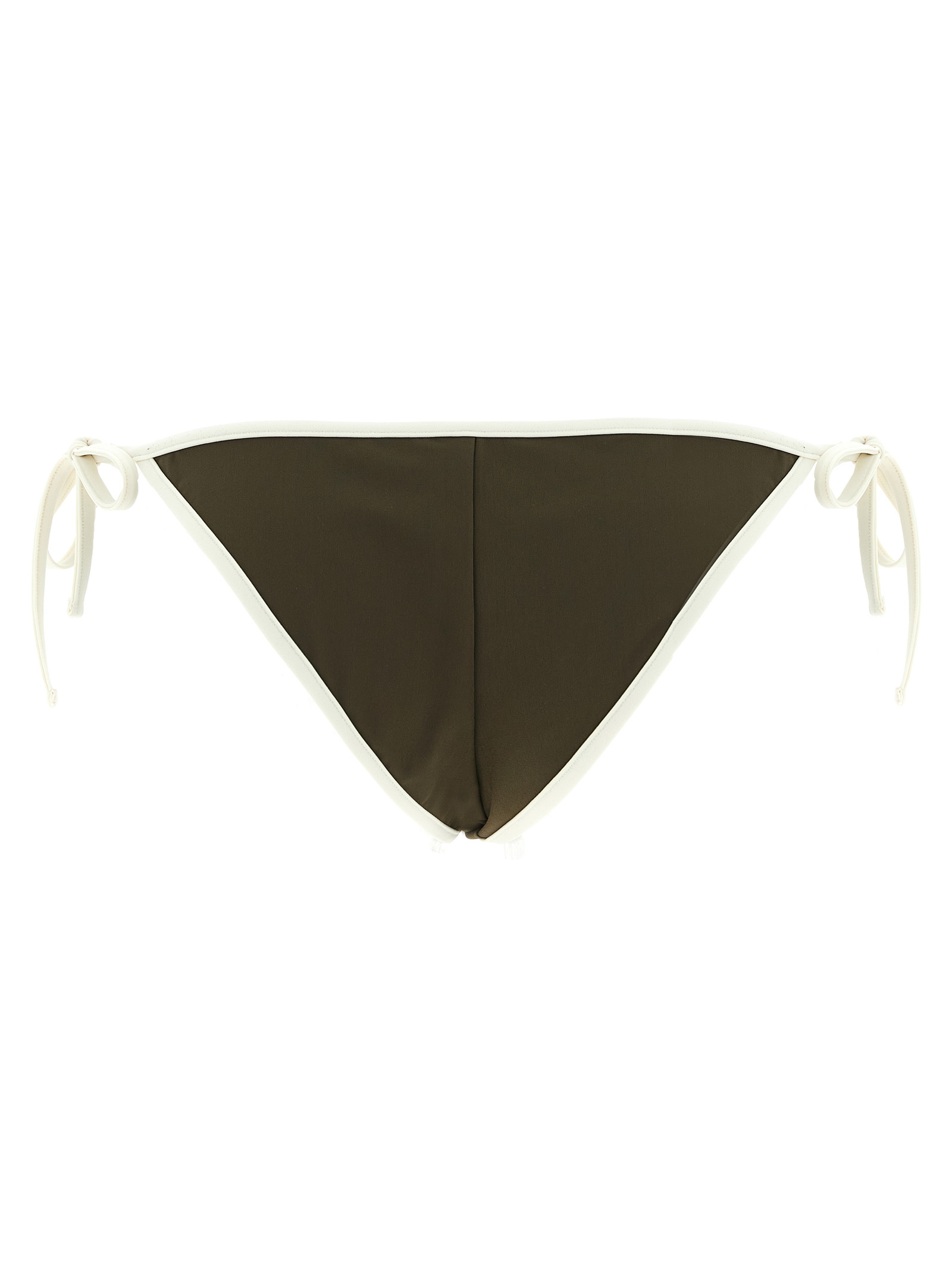 Трусики-бикини из технологичного трикотажа с контрастными деталями, шнурками для завязывания по бокам.Характеристики товара