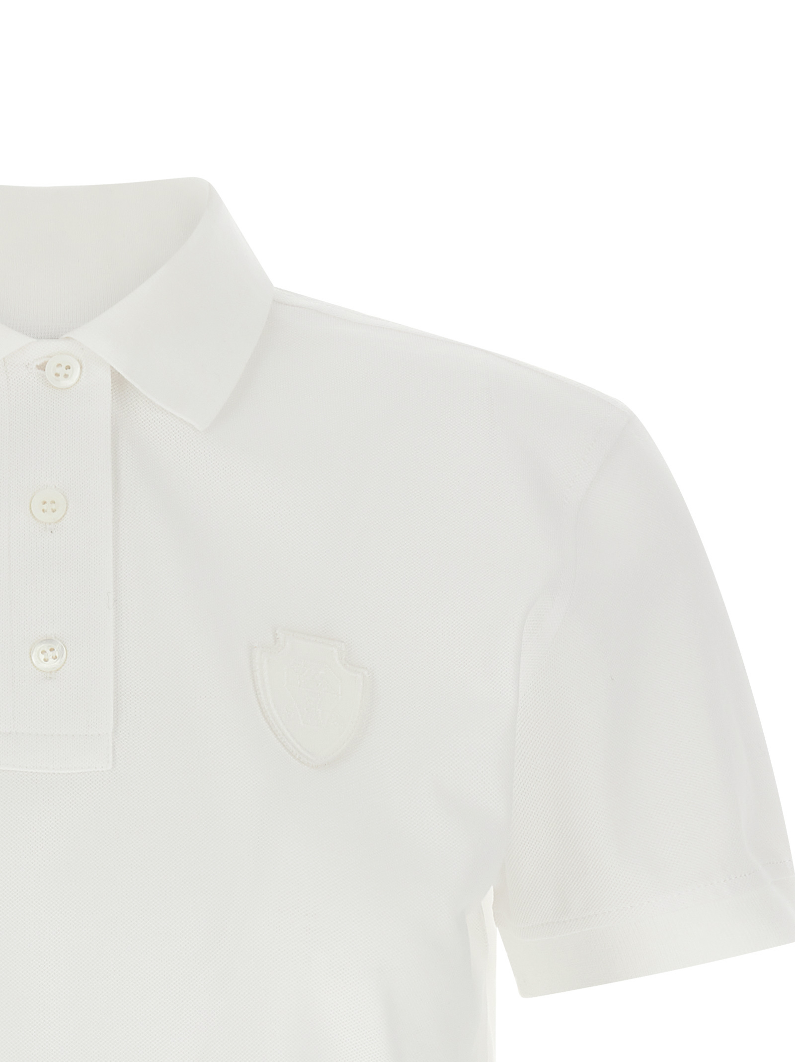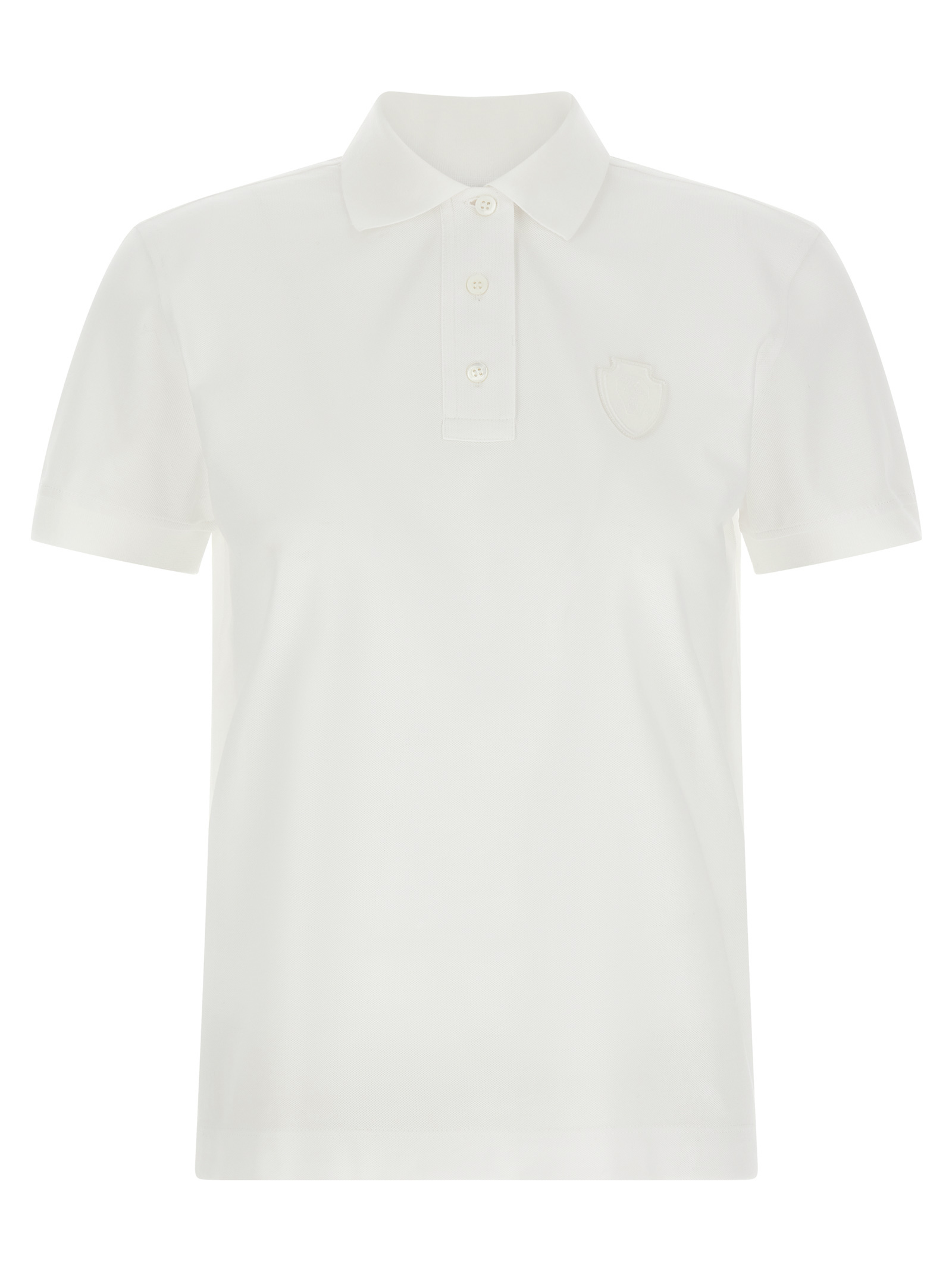 Поло-рубашка из хлопка пике, нашивка с эмблемой Соломео в тон на передней части, воротник и пуговицы, короткие рукава с манжетами, боковые разрезы.Характеристики товара