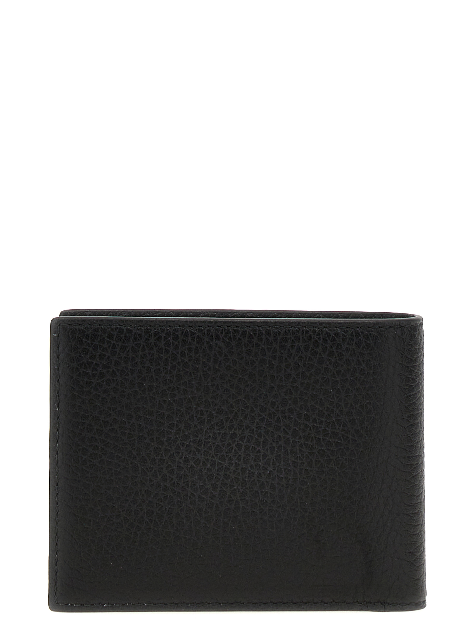 Кошелек из зернистой кожи с декоративными лентами и тисненым логотипом на лицевой стороне, а также отверстием в виде книги.