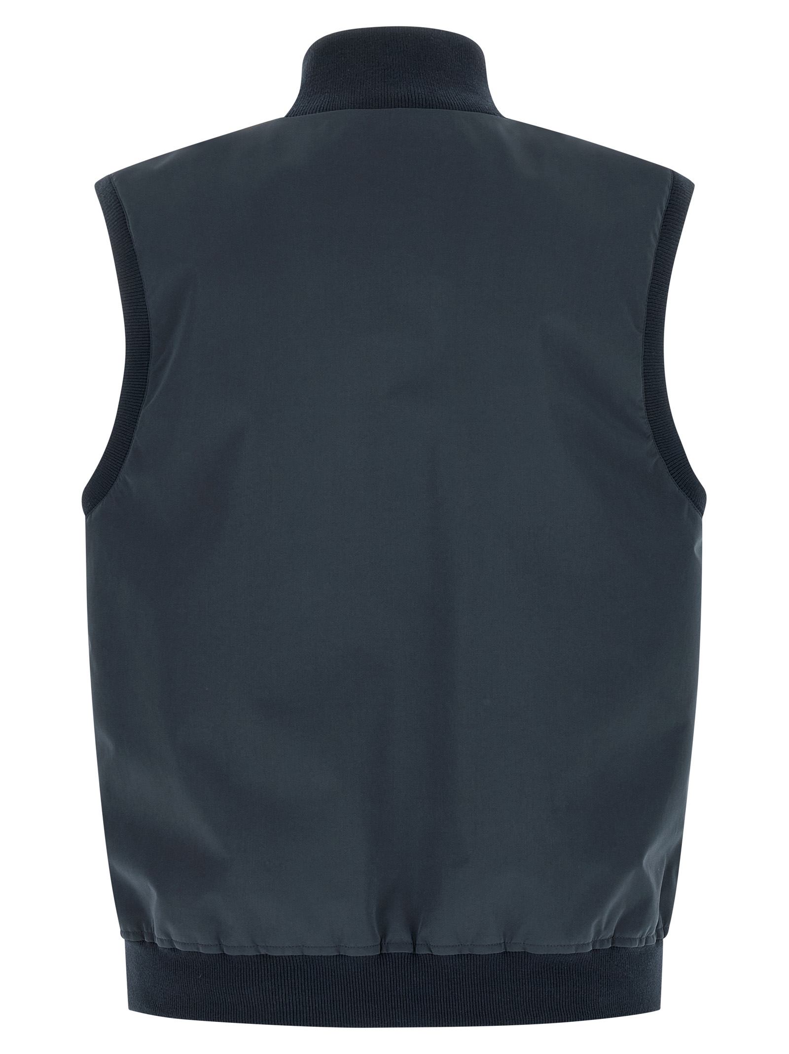 Breathable and water-repellent membrane nylon vest with Thermore® padded with tone-on-tone ribbed knit details, water-repellent nylon lining, high neck, front zip closure, pockets, headband.