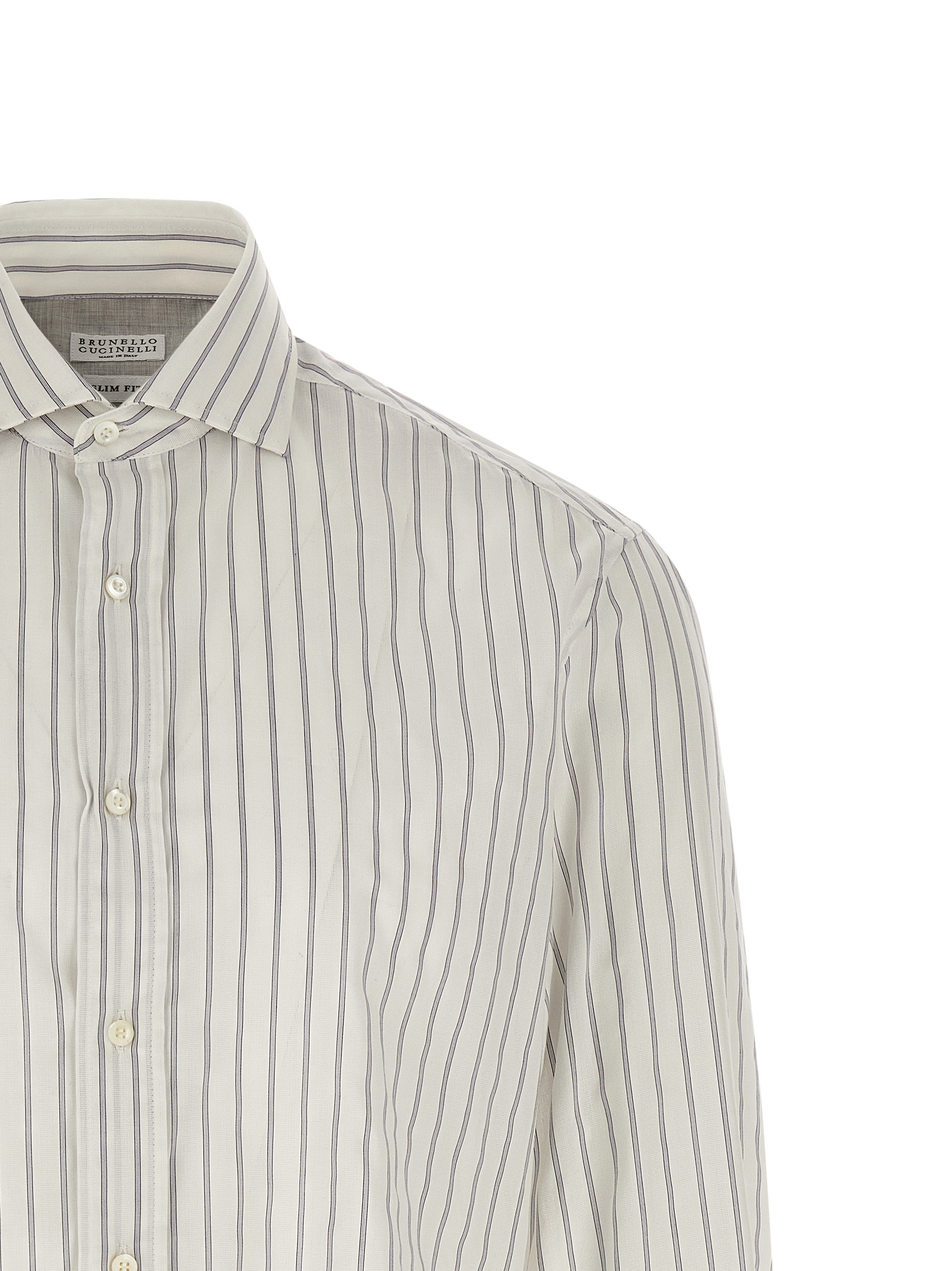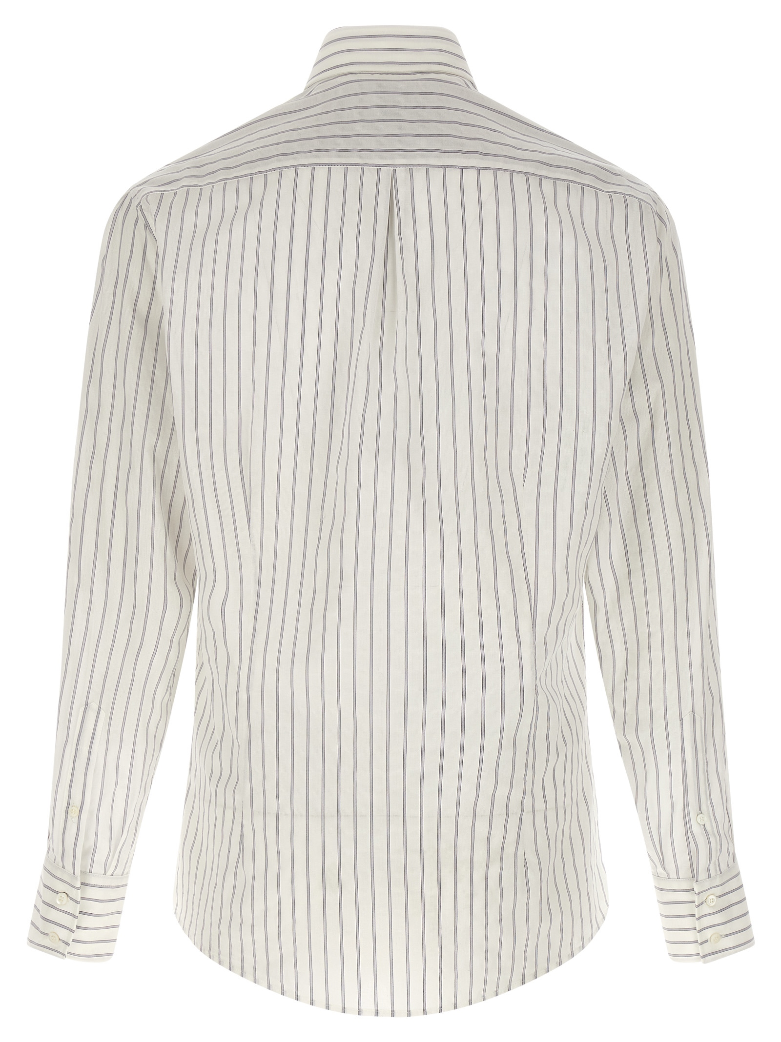 Striped light cotton shirt, diplomatic collar with flaps, front mother-of-pearl button closure, long cuffed sleeves, rounded hem.Характеристики товара