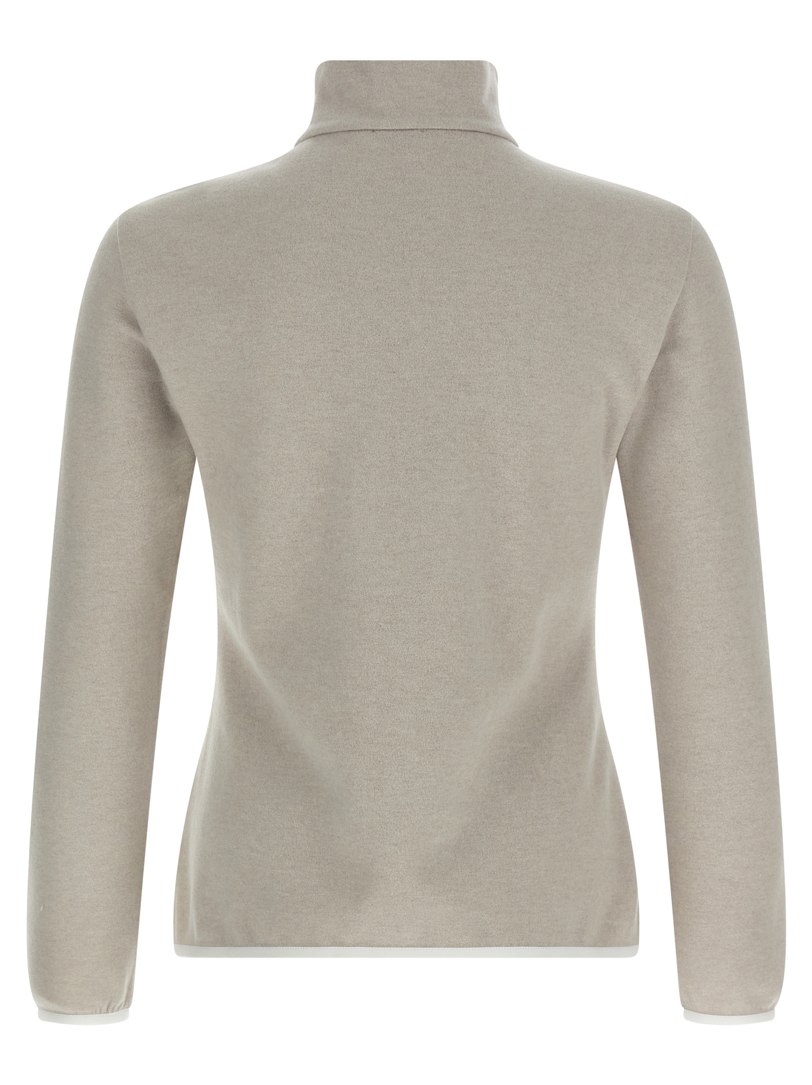 Cashmere and cotton turtleneck, half zip, nylon insert with logo print pocket, long sleeves, contrast elastic piping.
