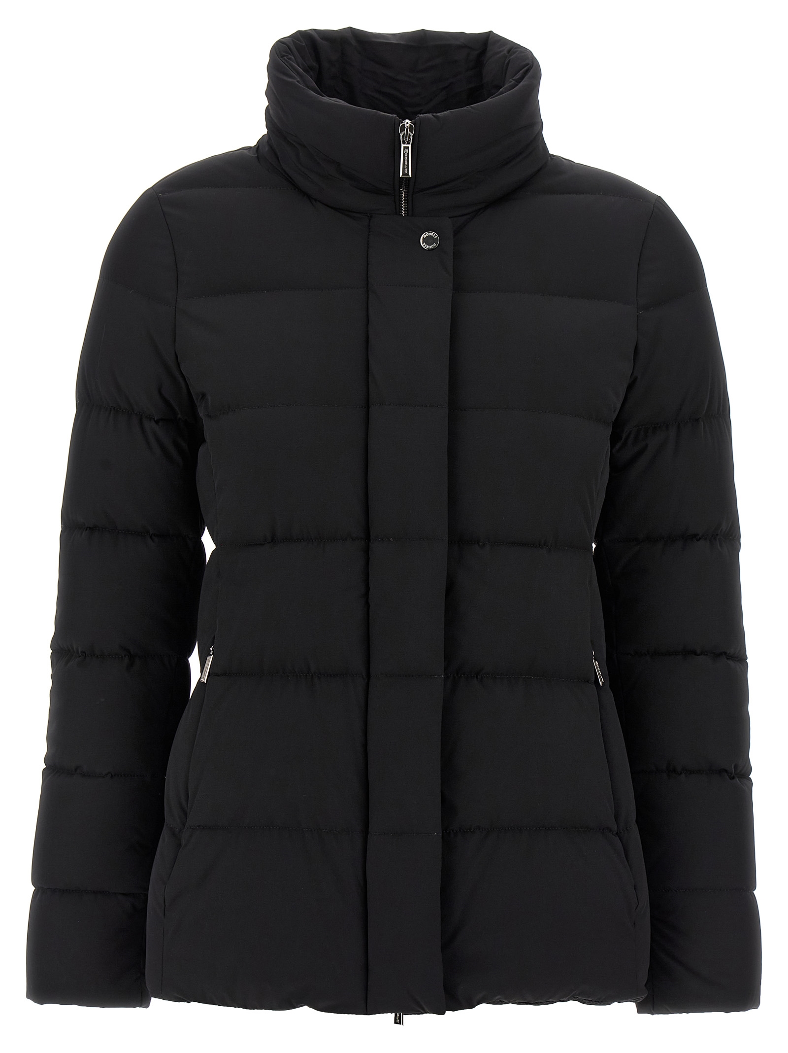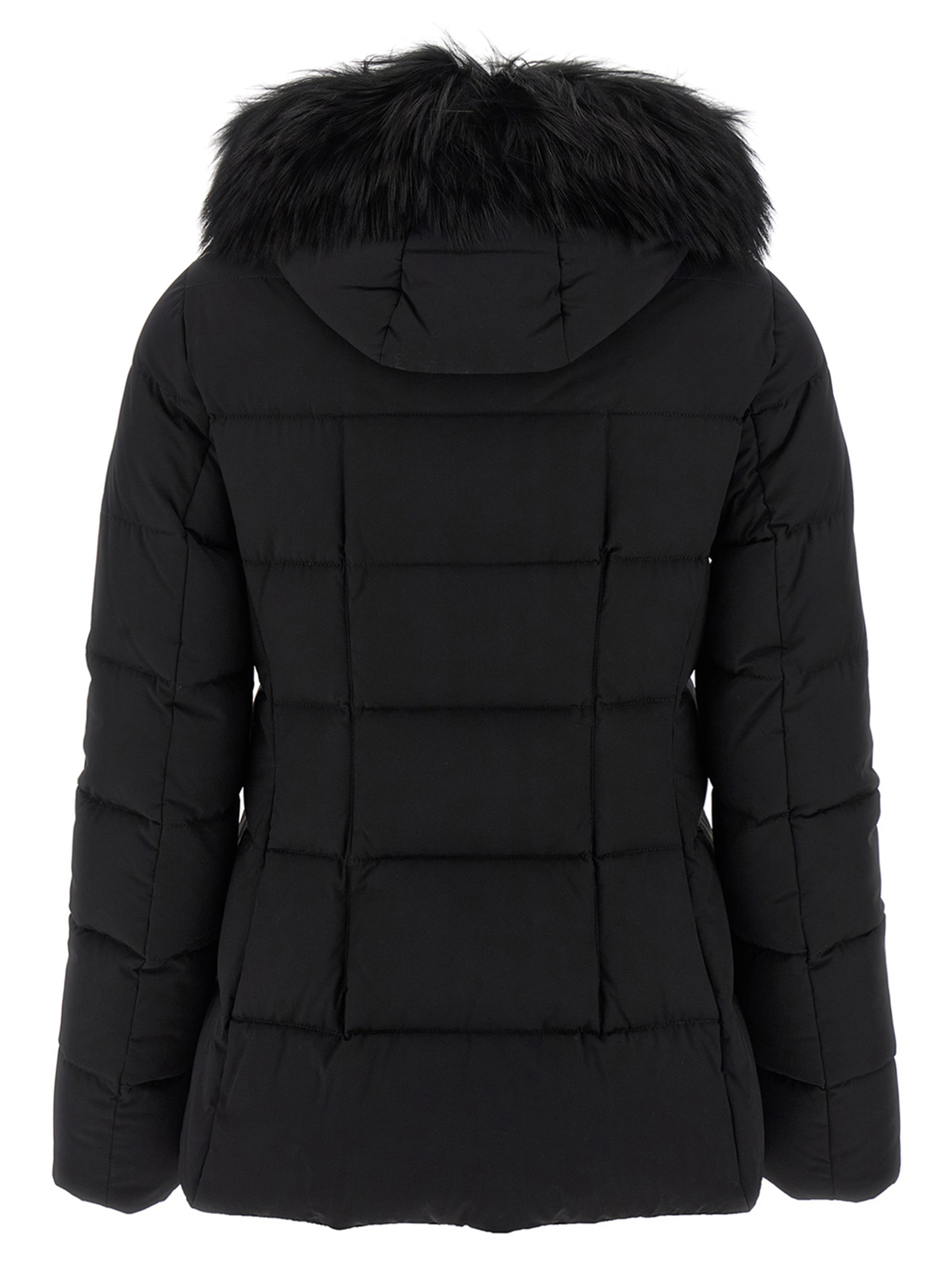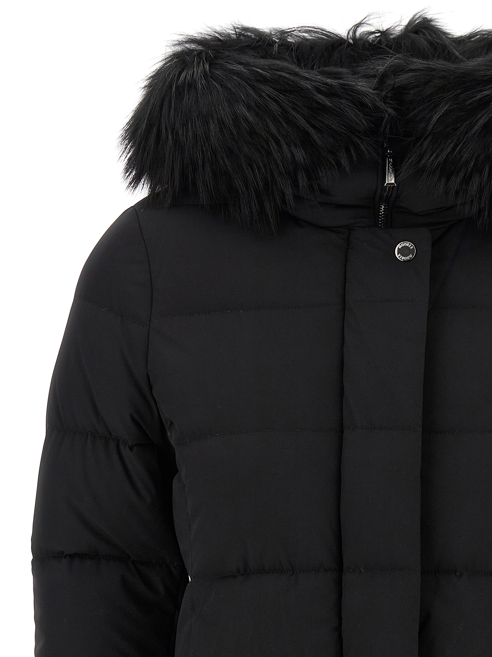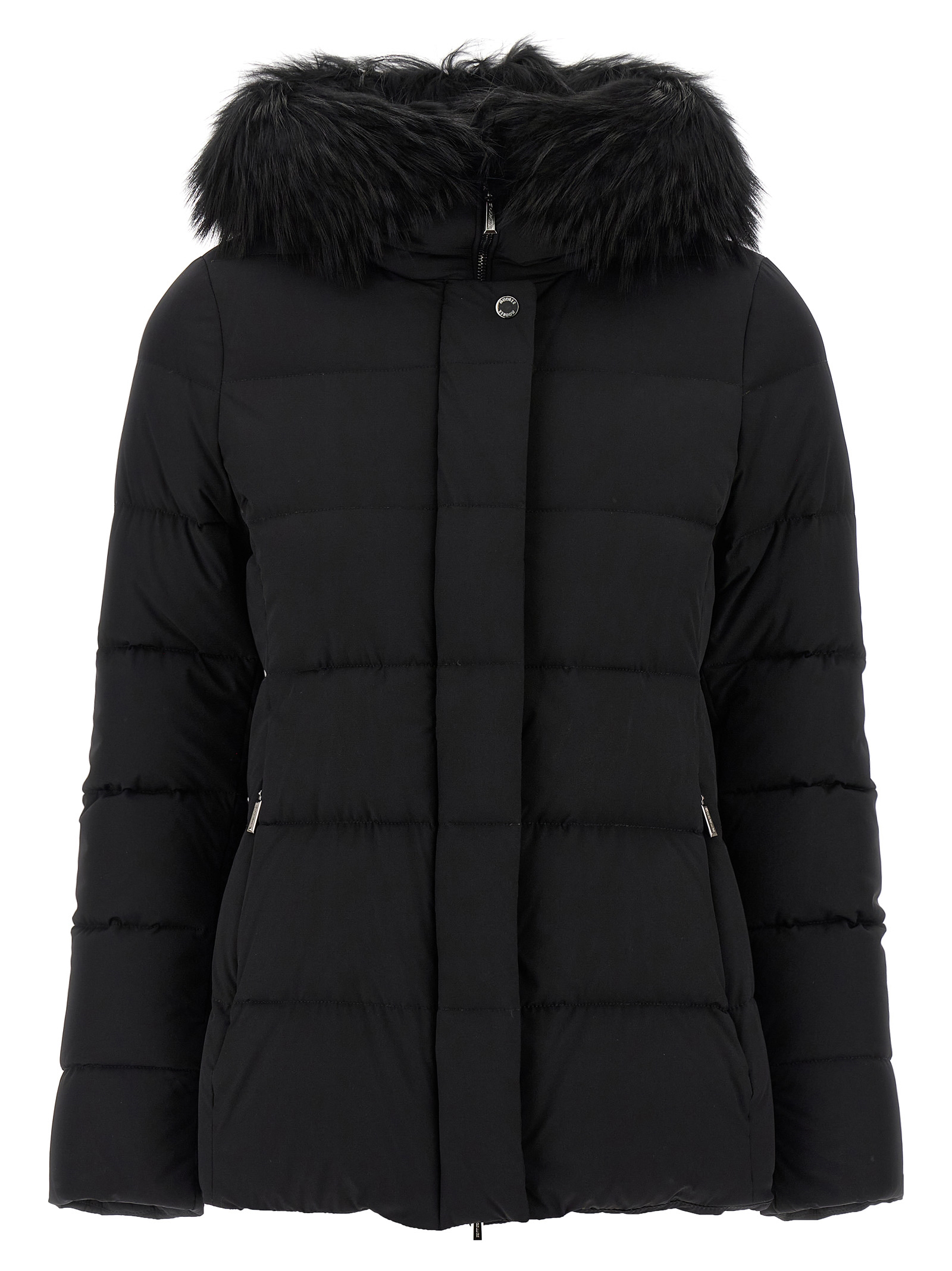 'Kilie' down jacket in bi-elastic and water-repellent performance fabric quilted like a boudin and goose down padding, adjustable and removable hood with removable fur insert, zip closure and front snap buttons, pockets, long sleeves.