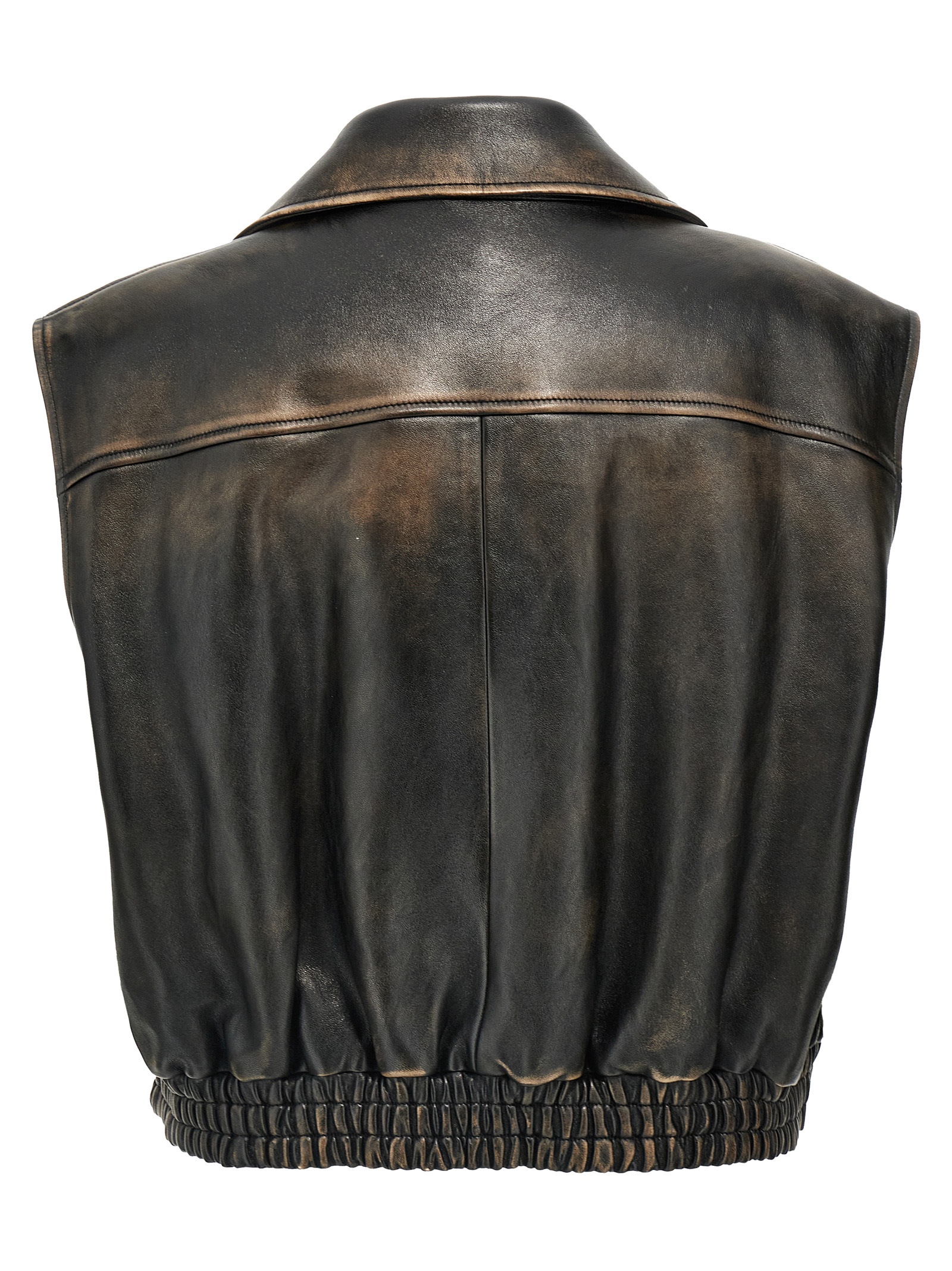Lightly padded vintage-effect nappa leather vest, front logo patch, pockets, button closure, elastic waistband.Характеристики товара
