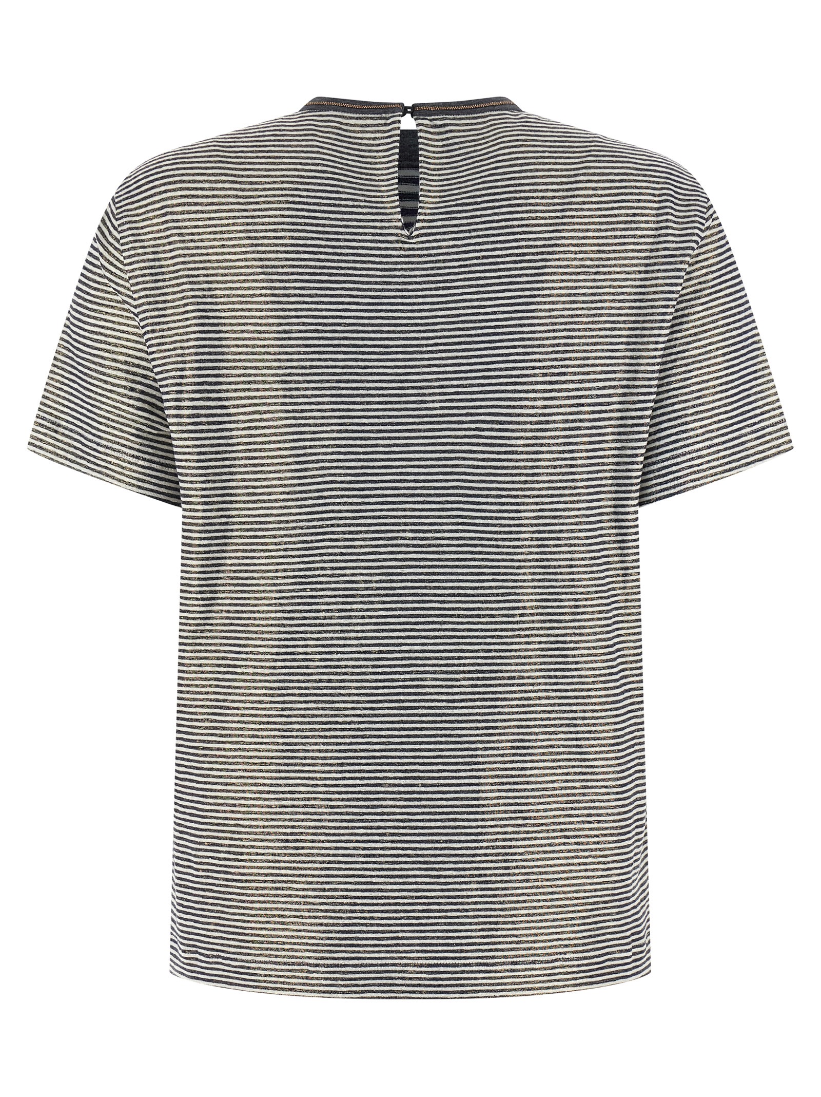 Striped stretch linen T-shirt with crewneck and contrast piping, 'Shiny Collar Detail' in Monile and back button closure with cut-out teardrop detail, and short sleeves.Характеристики товара