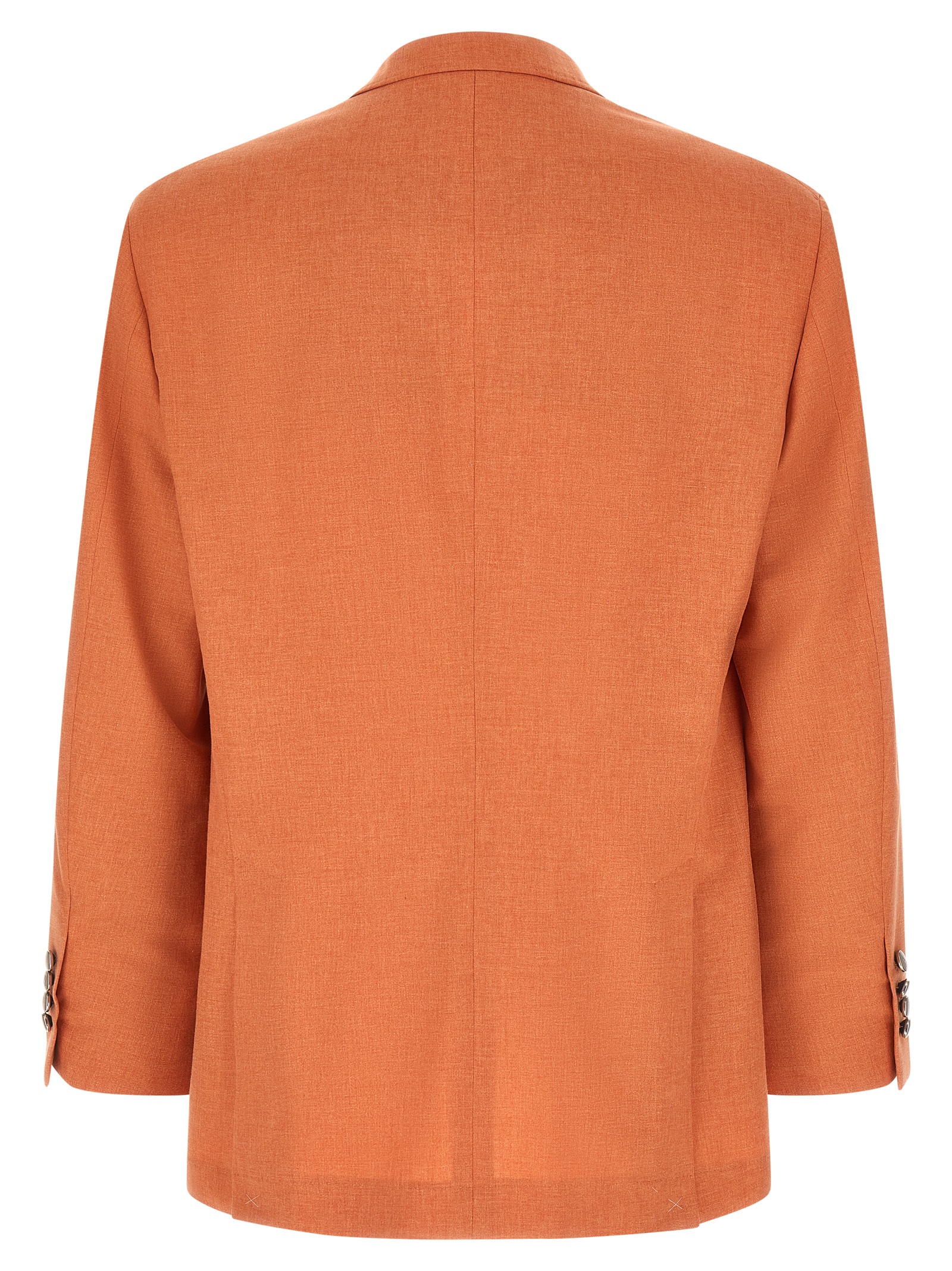 Single-breasted deconstructed single-breasted mouliné canvas blazer in wide-weave virgin wool, cotton and silk, two-way metal button closure, large peak lapels, flap pockets, ticket pocket and chest pocket, two inside pockets with button closure and pen pocket, 'Spalla Solomeo', cuffs with four metal buttons and opening buttonholes, Half cupro lining, double rear split.
