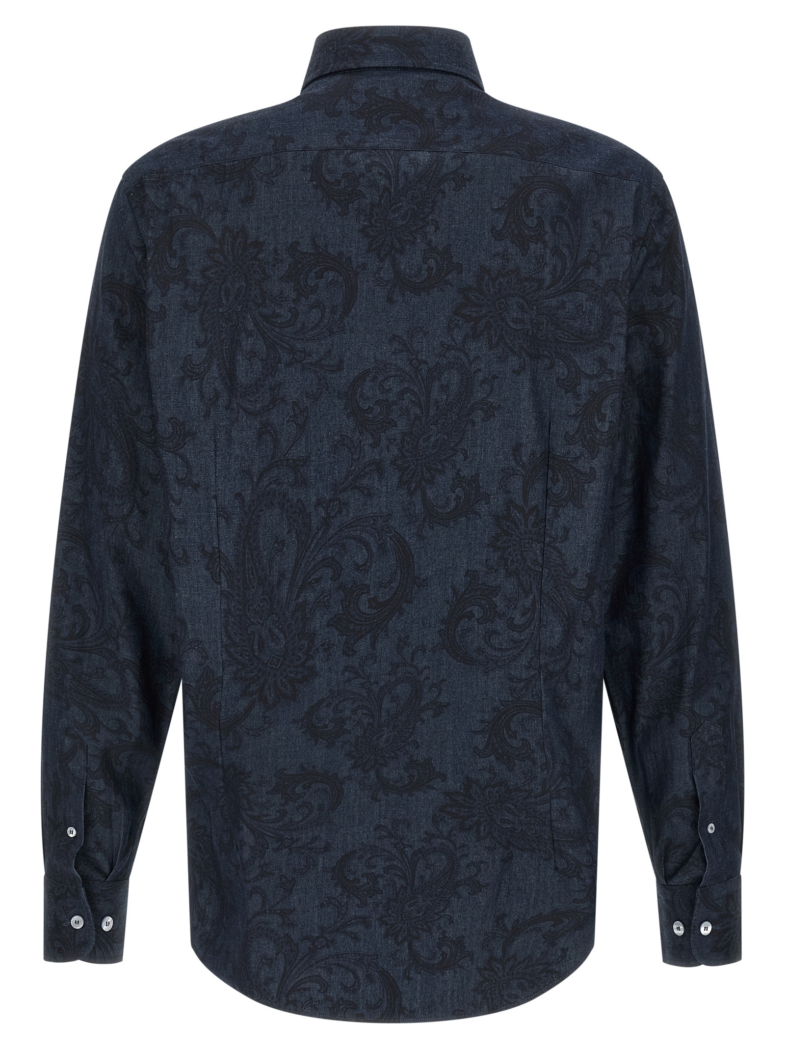 All-over 'Paisley Ramage' pure cotton denim shirt, 'Pegaso' logo embroidery, front button closure, long cuffed sleeves.