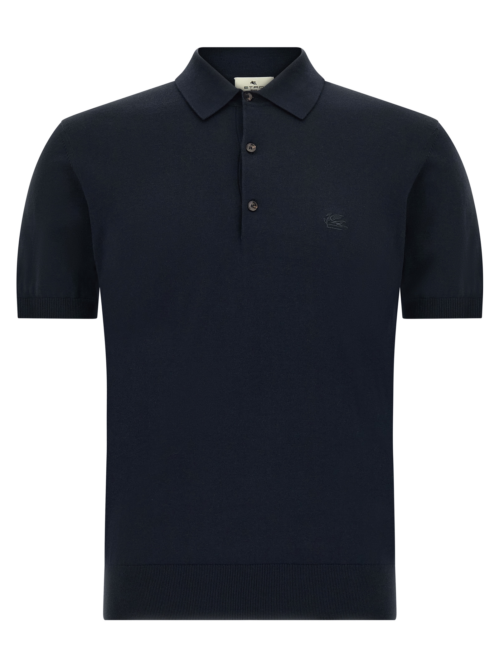 Cotton polo shirt, tone-on-tone 'Pegaso' embroidery on the front, collar and buttons, short sleeves with cuffs, and band on the hem.