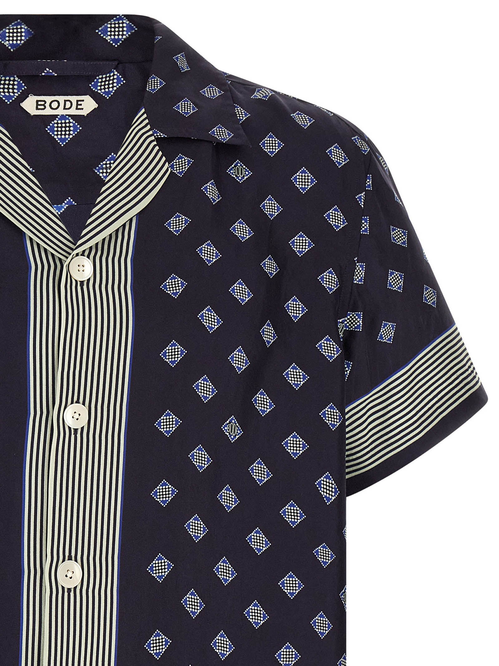 Шелковая рубашка «Foyer Diamond» с принтом в виде шарфа, вдохновленным галстуком 30-х годов, модель для боулинга, застежка на пуговицы спереди, короткие рукава.Характеристики товара