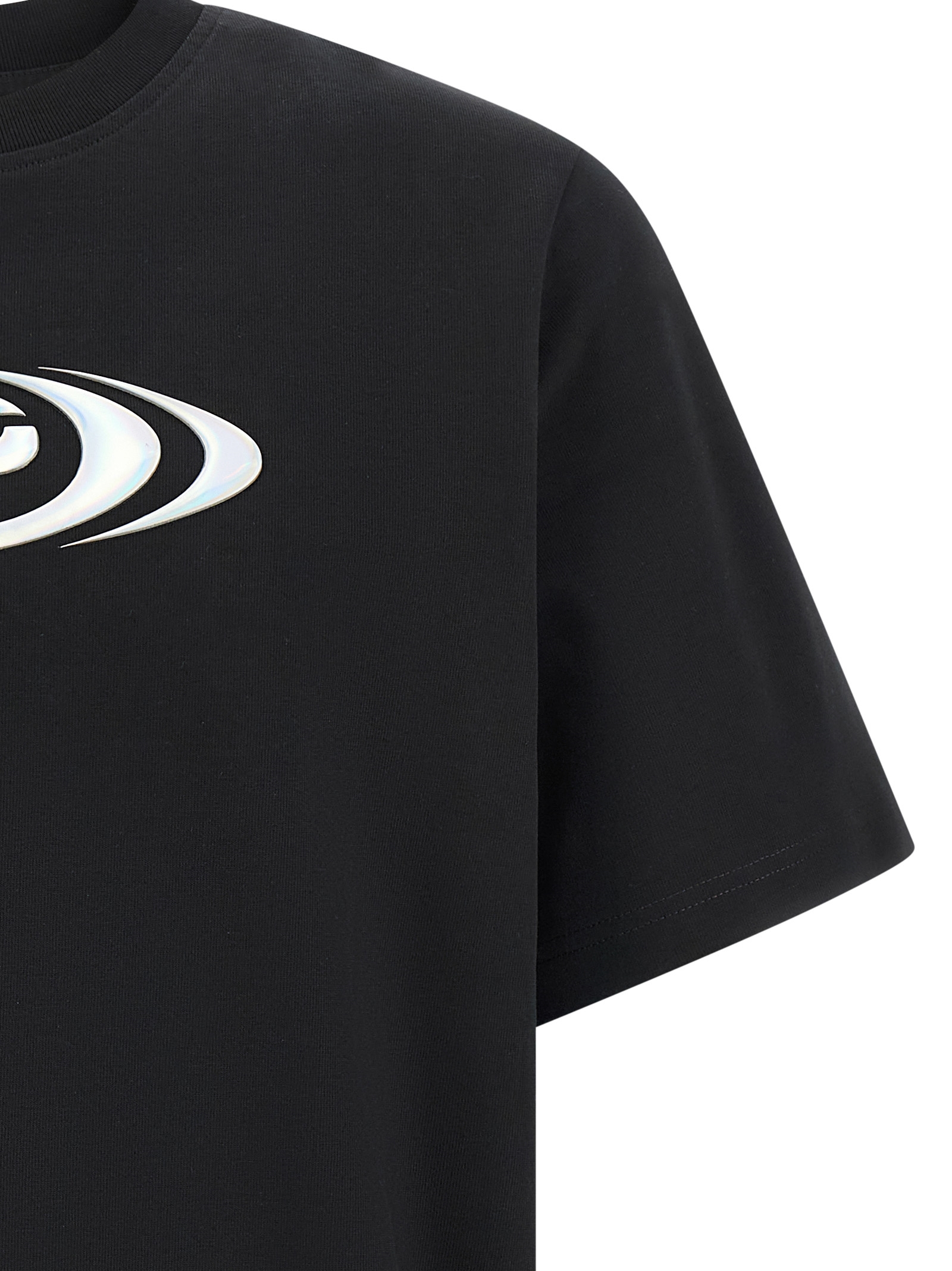 Cotton, 'Warped Logo' deformed T-shirt with mixture of midtones and glassy effects on the front, crew neck, and short sleeves. Article created in collaboration with Martin Naumann to create unique works of art with nuances and material effects. SUSTAINABLE: This product is made of organic cotton.
