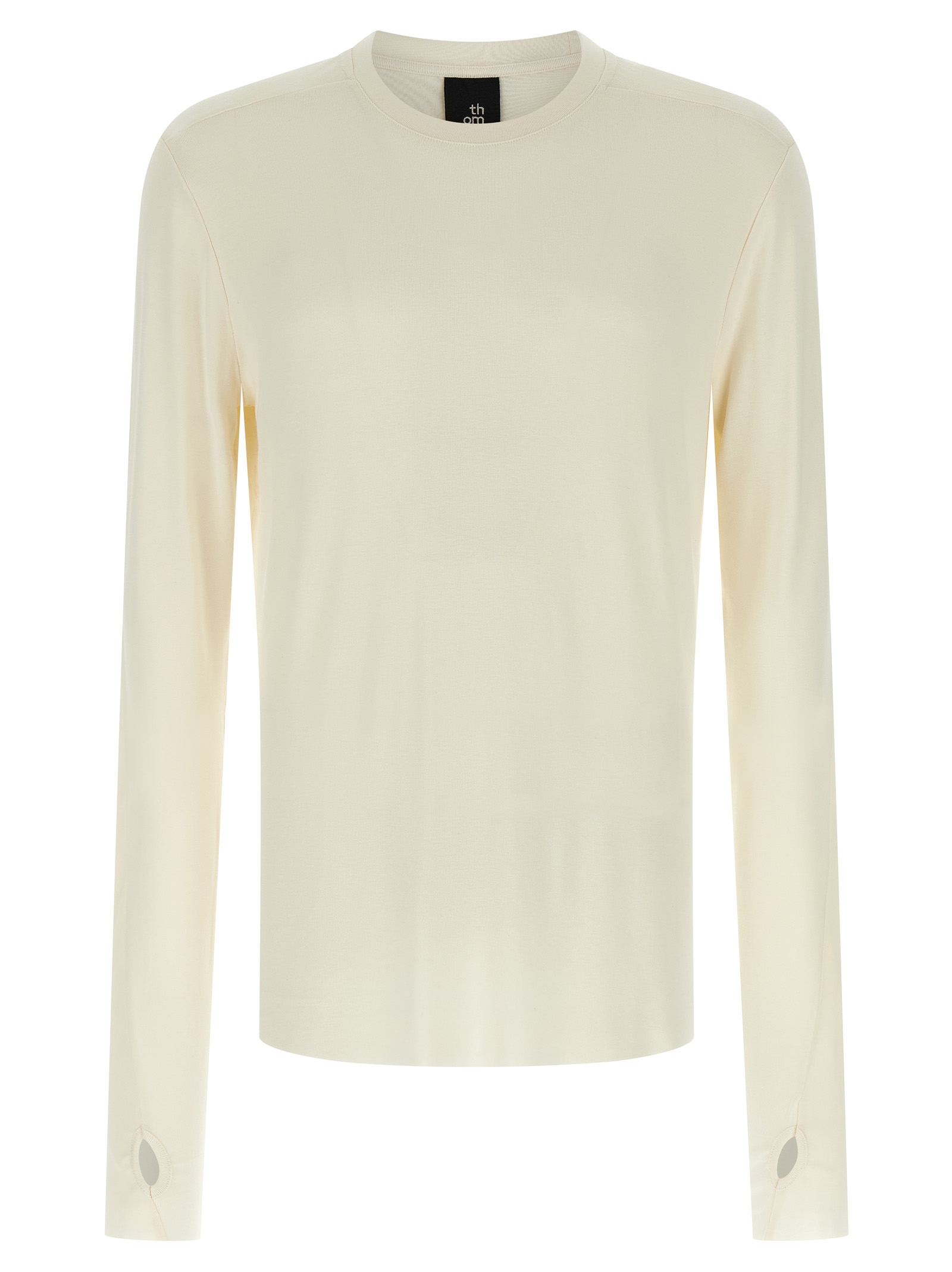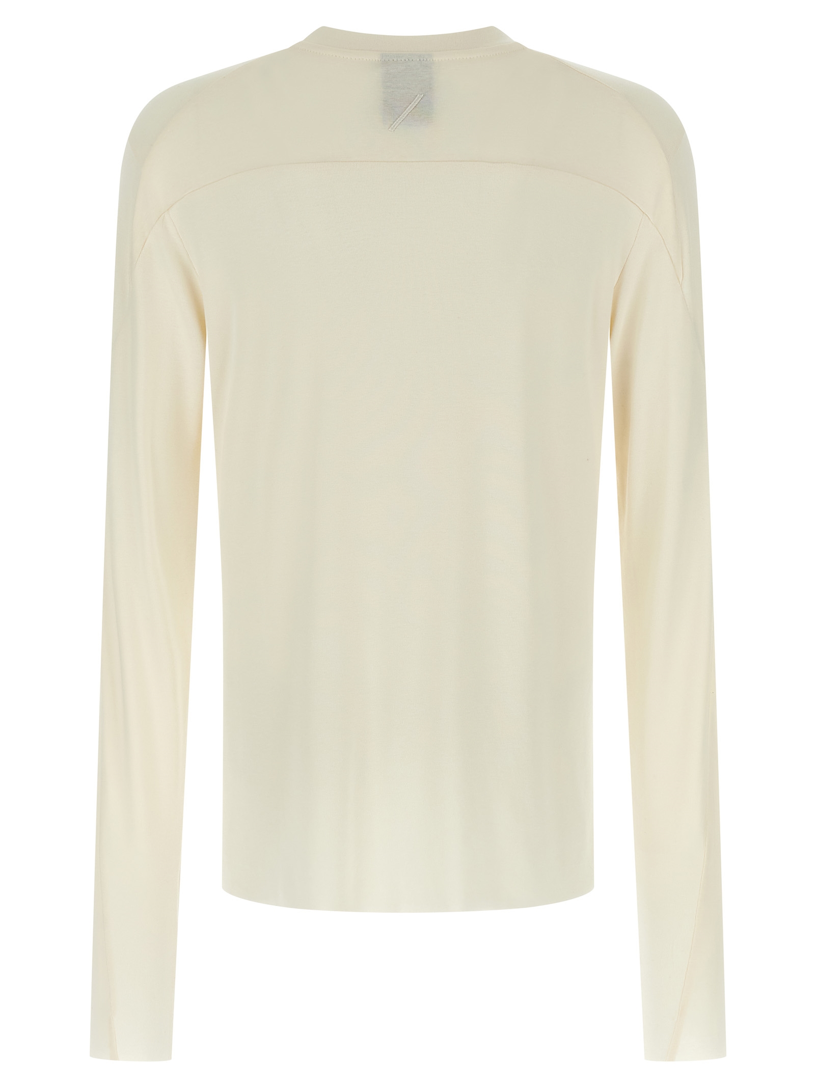Crewneck t-shirt in slightly stretch viscose jersey, long sleeves and raw cut hem.