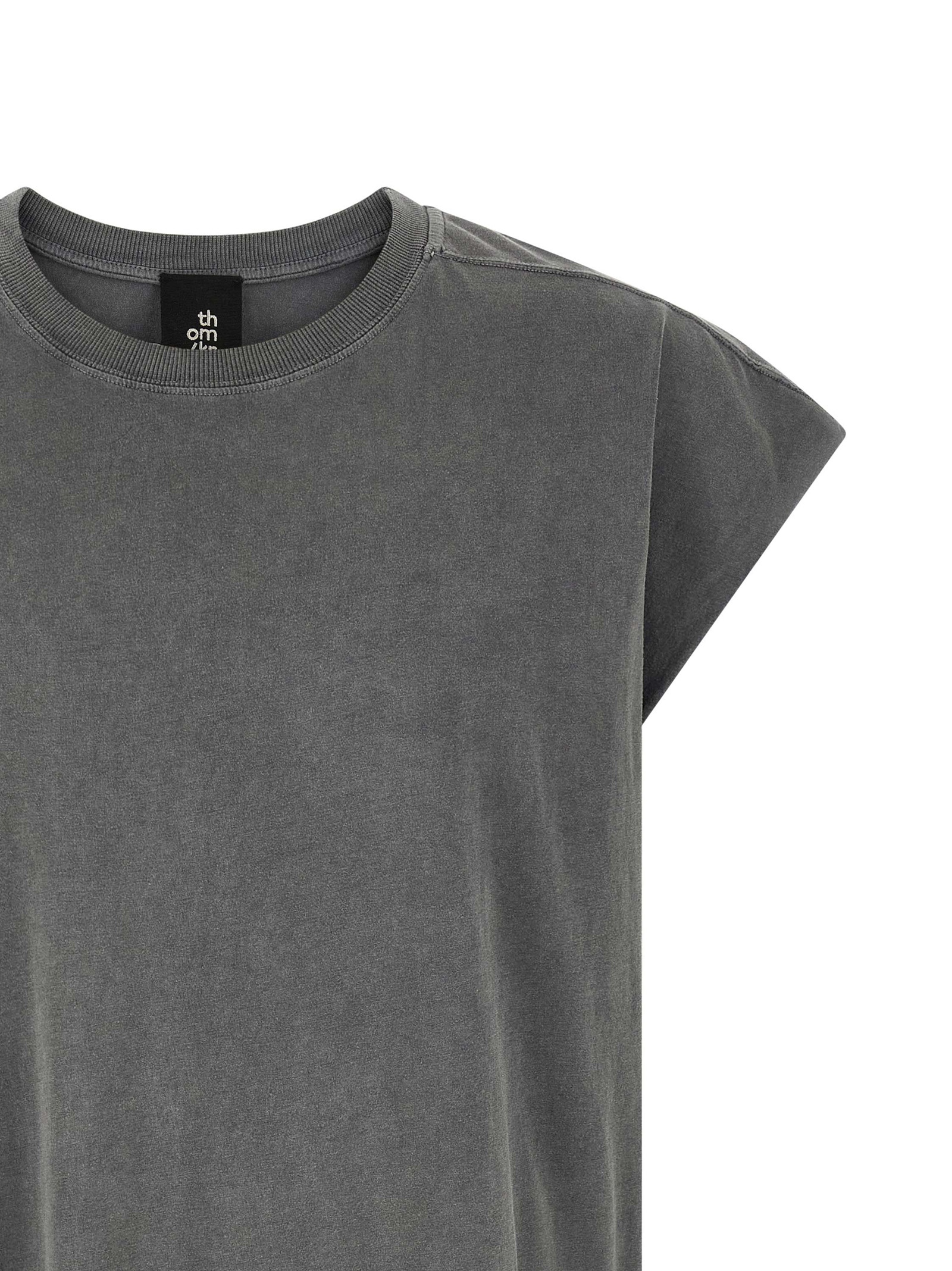 '925' used-effect cotton jersey t-shirt with round neckline, raw cut hem, dropped shoulder and contrast stitching at the back.
