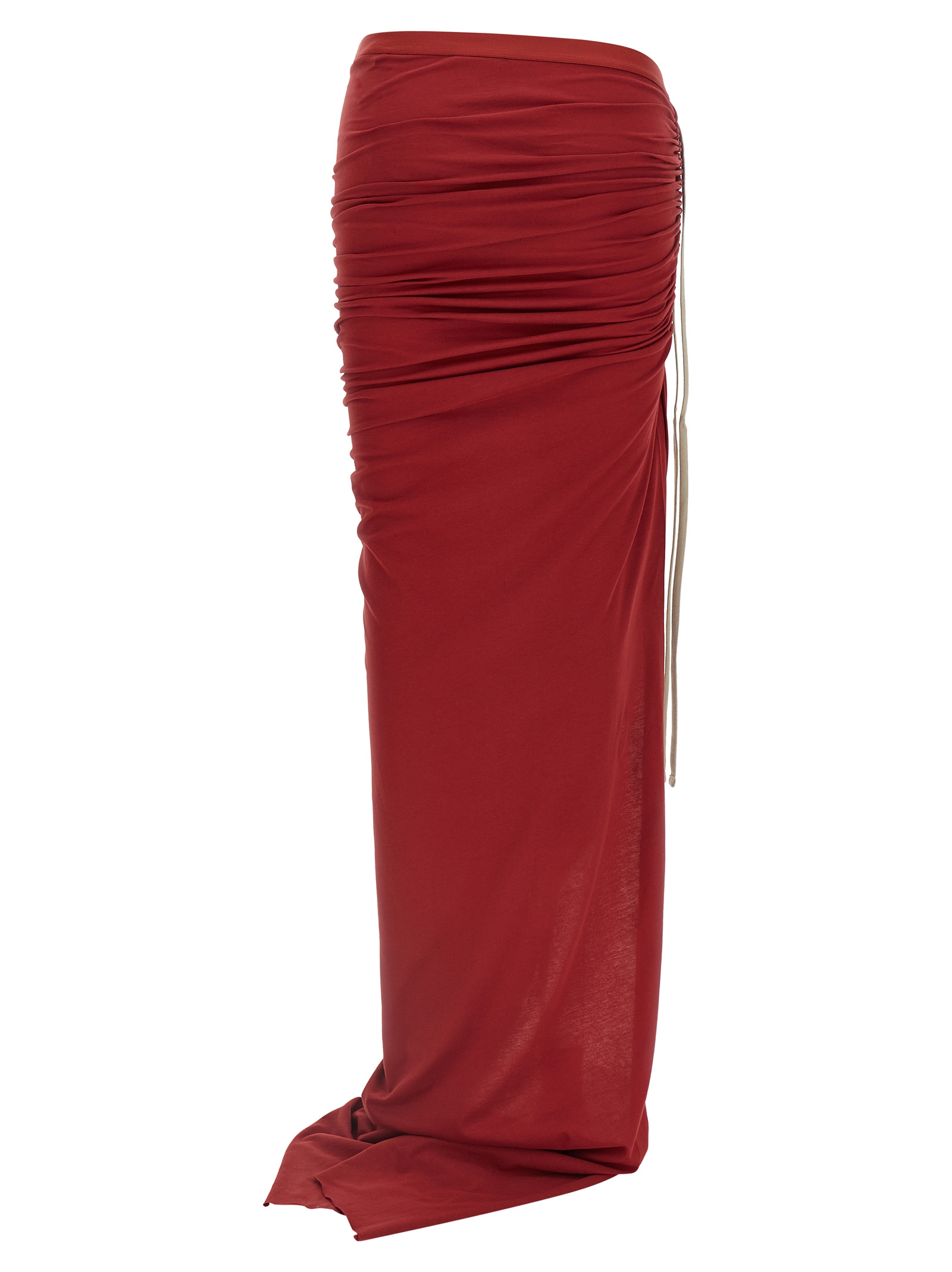 Moncler + Rick Owens 'Adjustable' cotton jersey skirt , front logo patch, wide side split with drawstring to adjust its width, elastic waistband, wide train.