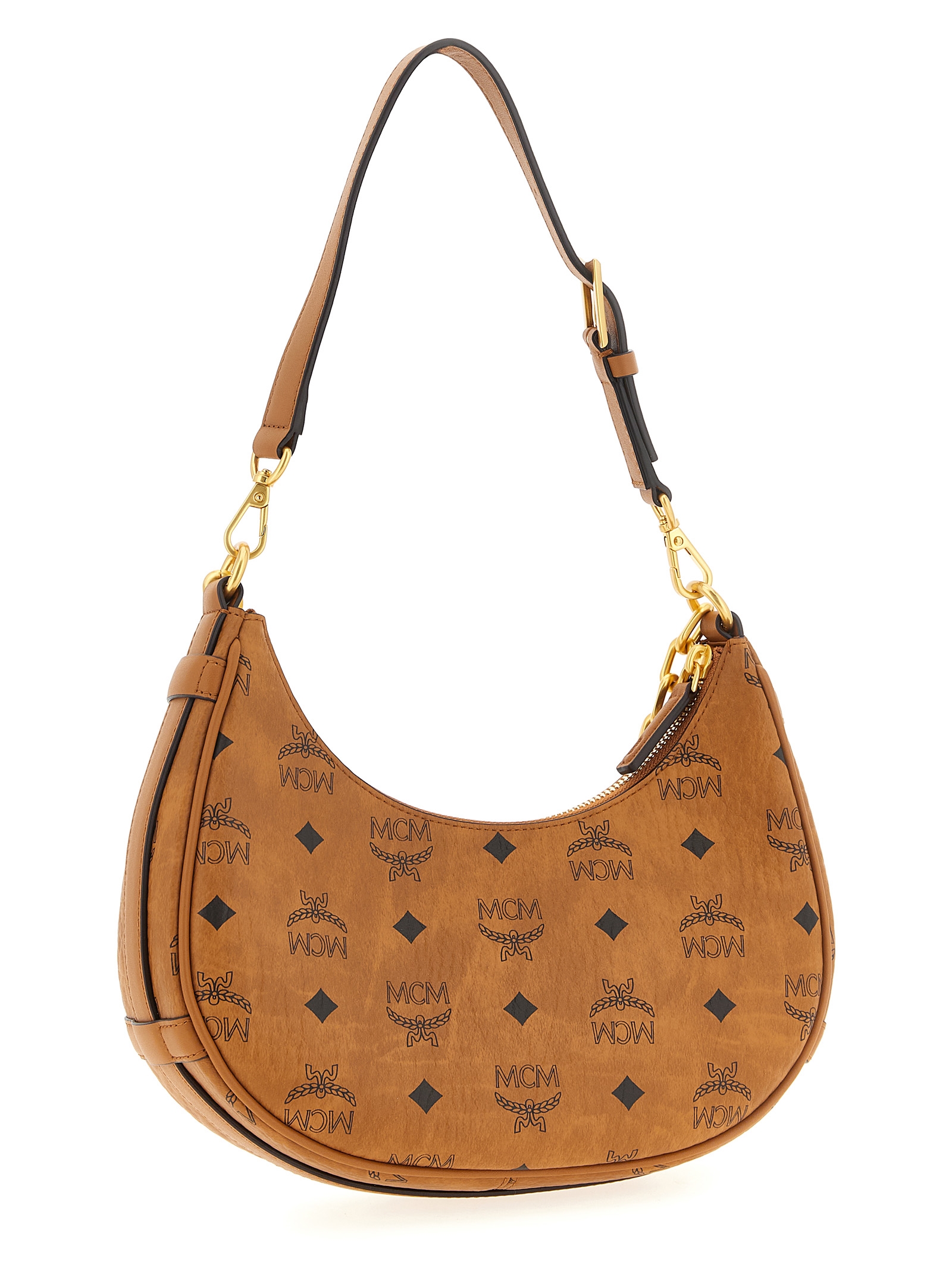 'Aren Crescent Hobo' shoulder bag in Visetos monogram canvas, fixed chain handle, top zip closure, adjustable and removable shoulder strap.