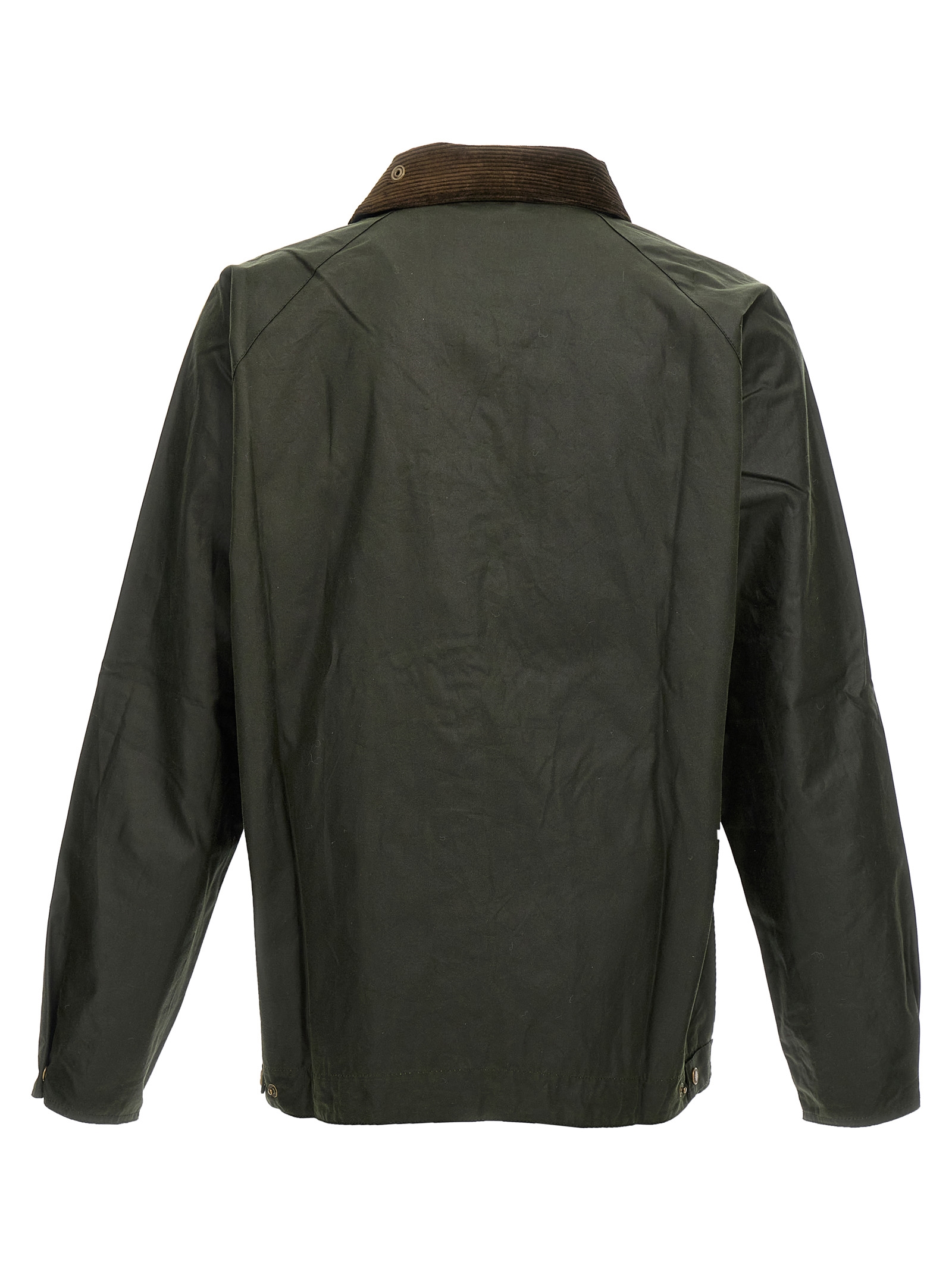 'Short Bedale' waxed cotton jacket with corduroy collar, zip closure, pockets, long sleeves.