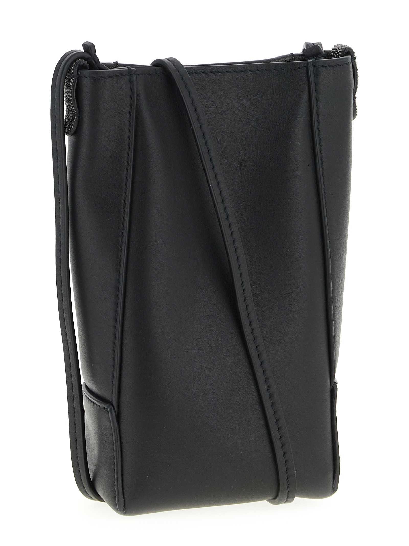 Mobile phone case with nappa shoulder strap, magnetic closure and Monile details.